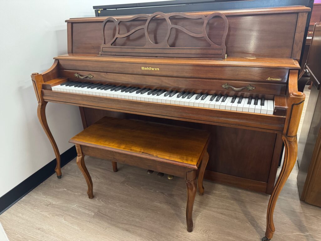 The Baldwin Model 662 CHY is an American-made console piano distinguished by its elegant Queen Anne cherrywood cabinetry. It features Baldwin’s “Full-Blow” direct action for a responsive, professional touch and longer strings than standard consoles, resulting in a surprisingly rich and resonant tone. It remains a highly sought-after model for its combination of musical depth and furniture-quality aesthetics.