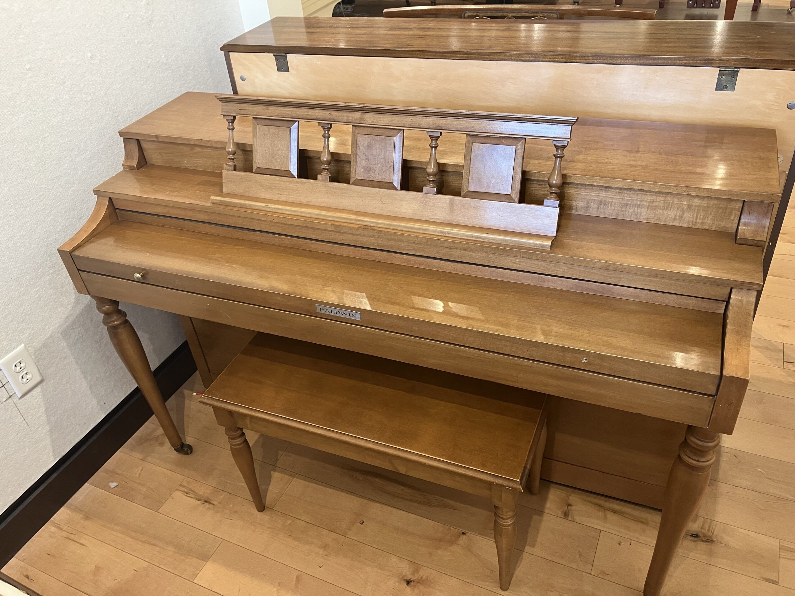 This is a charming Baldwin spinet. It’s small but maintains a great sound and the rich tone that sets Baldwin pianos apart! It would fit nicely in a small to medium sized room.