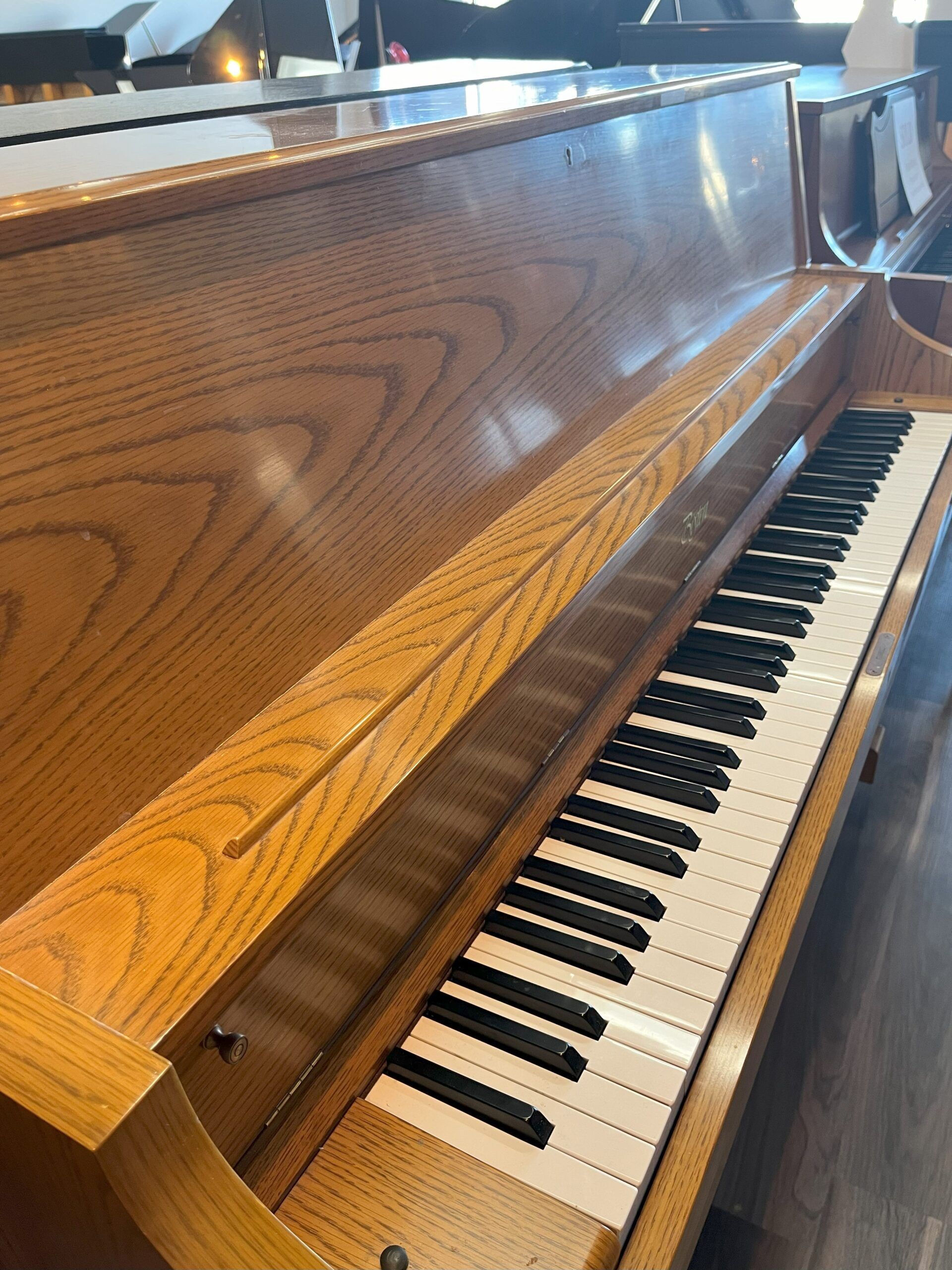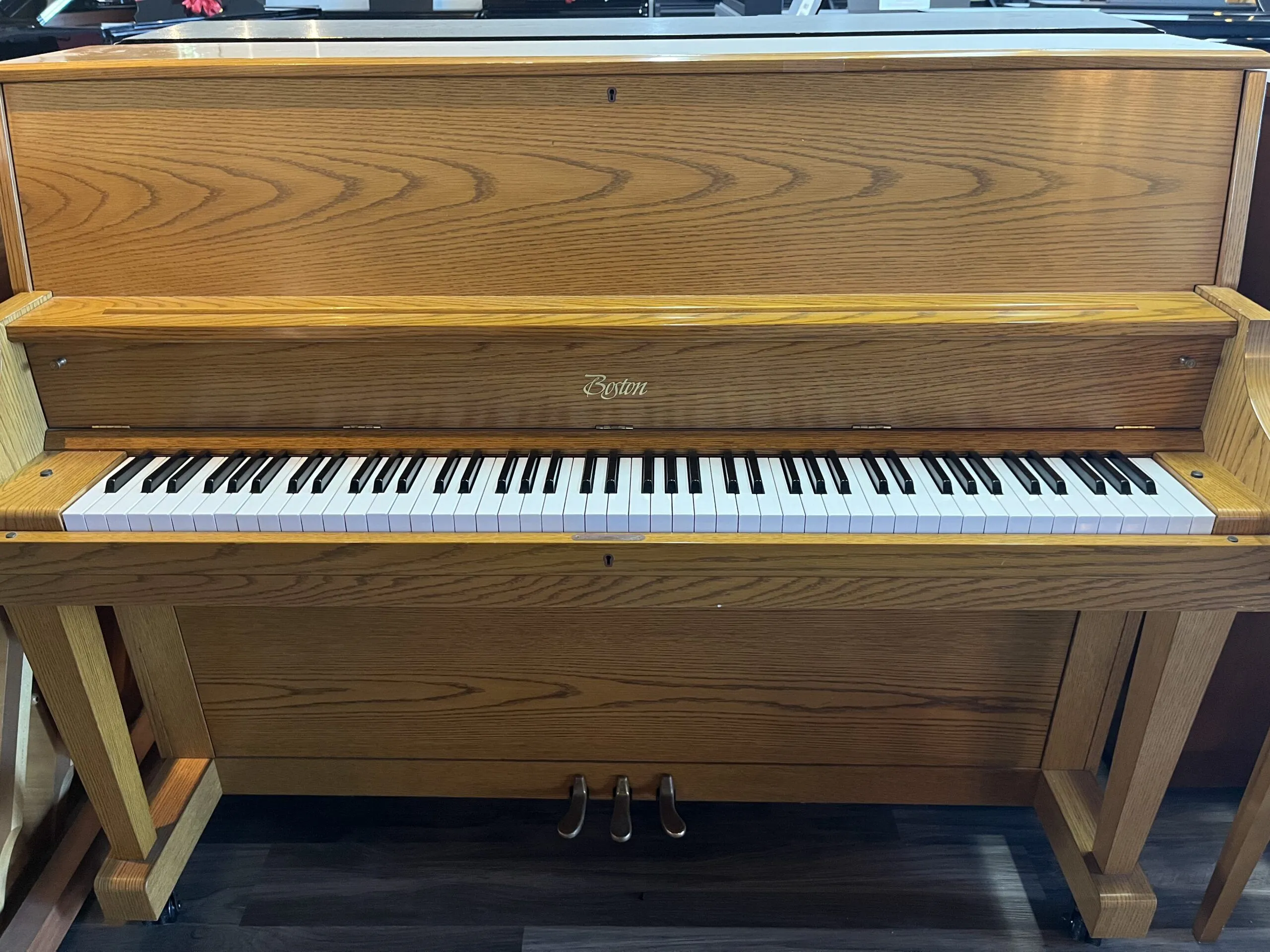 Light oak finish in excellent condition! This studio upright is equally common in schools, churches, and homes. The Boston piano brand is designed by Steinway & Sons, then built in Japan by Kawai. Visit us to audition this piano for your space!