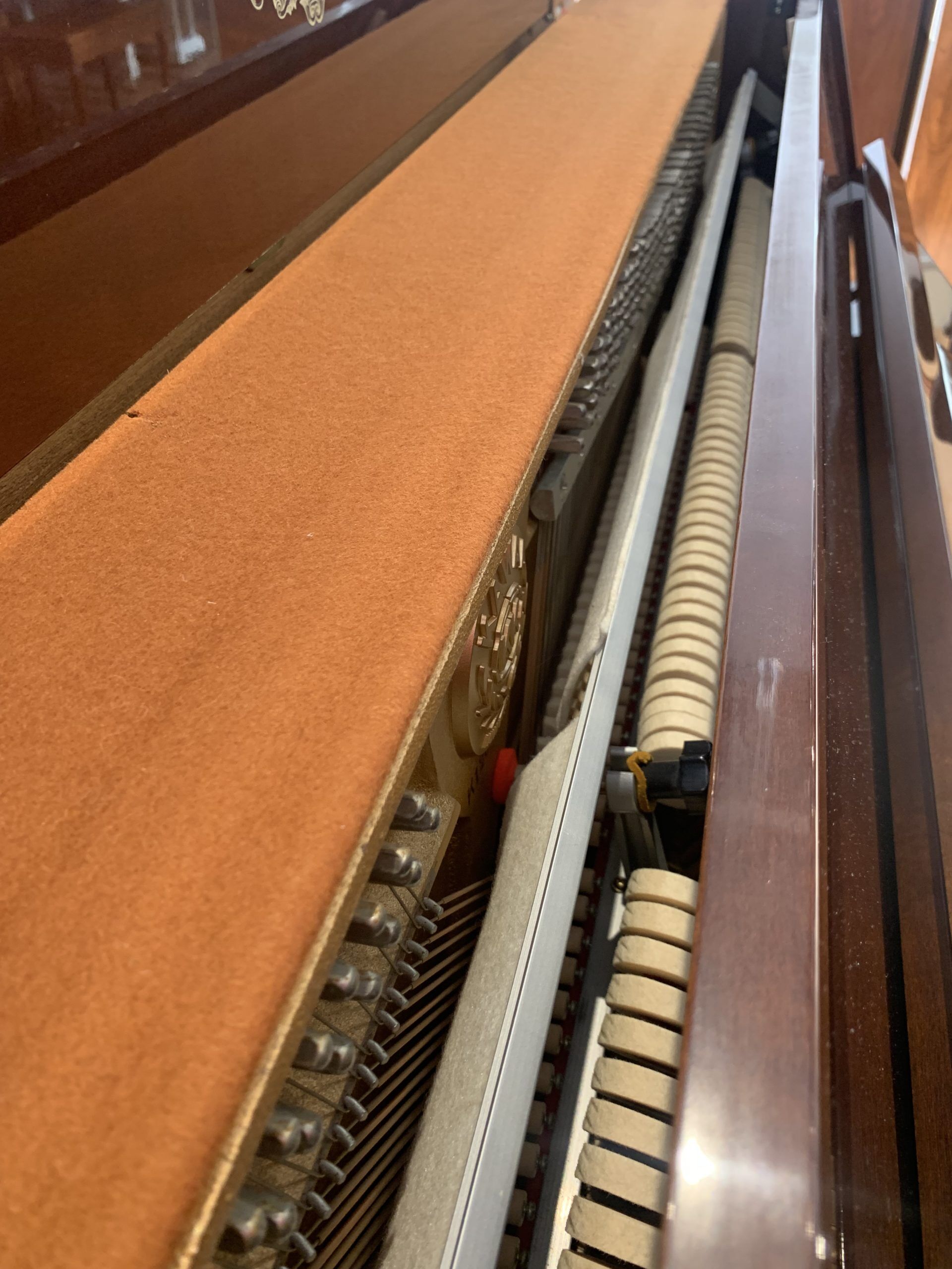 The CE-7N is a quality 42″ continental console with no front legs. The sound is warm, pleasant and the action has maintained its sensitivity. This Kawai upright is a joy to play, and its mahogany cabinet will add an elegant splash of color to your space!