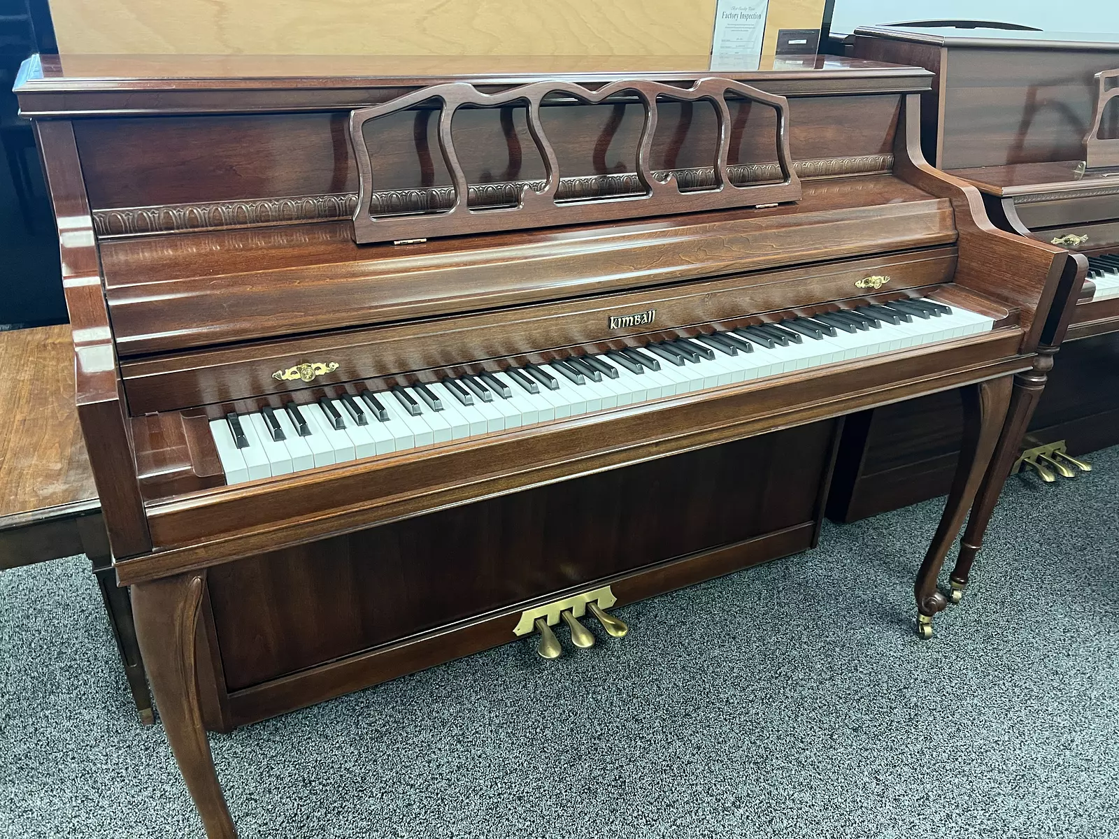 This Kimball was made here in the United States. It has a gorgeous cabinet with queen anne legs and an ornate music rack.