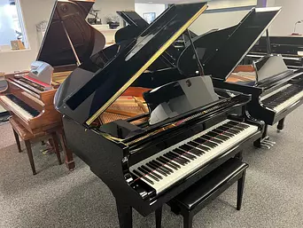 This Pearl River grand is fantastic for a limited space situation. At 4’6″ this grand allows you to have the sound and dynamic capabilities that come along with owning a grand piano, at a fraction of the space normally required. The popular polished ebony finish is in beautiful condition and shows little to no marks or scratches.