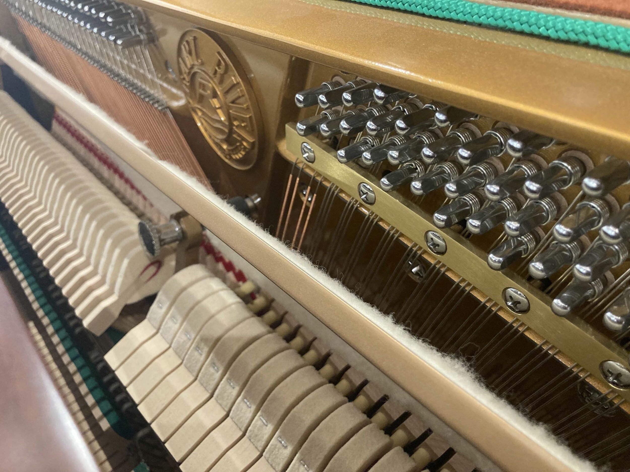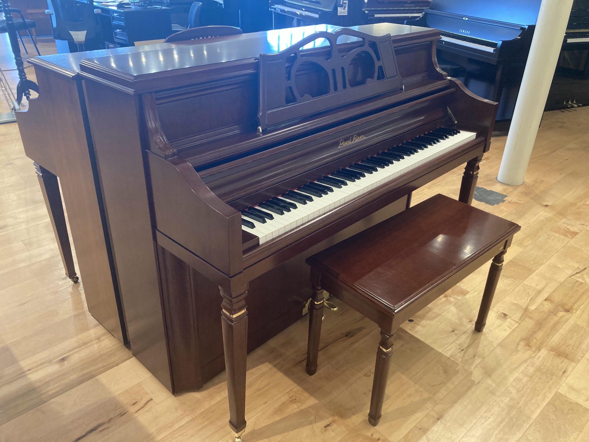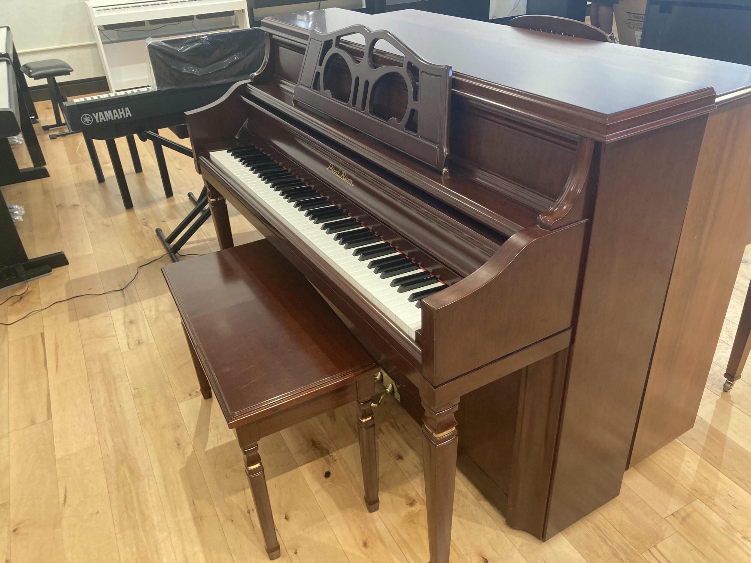 This piano has a robust, vibrant tone. With its near-mint mahogany finish and gold accents, this piano would look great in any home. Responsive, elegant, and above all — fun! This piano will likely sell quickly, so come visit our store ASAP!