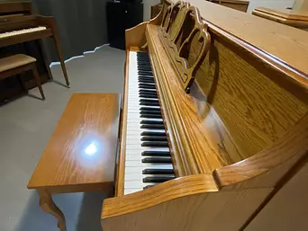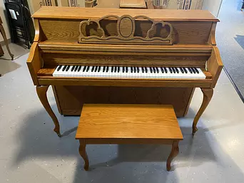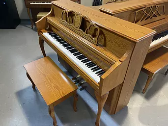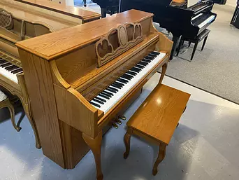 This Samick JS-043 is a great example of the quality pianos Samick has been producing for years. The gorgeous light oak finish and elegant Queen Anne legs will add beauty and class to any room. Perfect for learning, practicing, or just infusing your home with music!