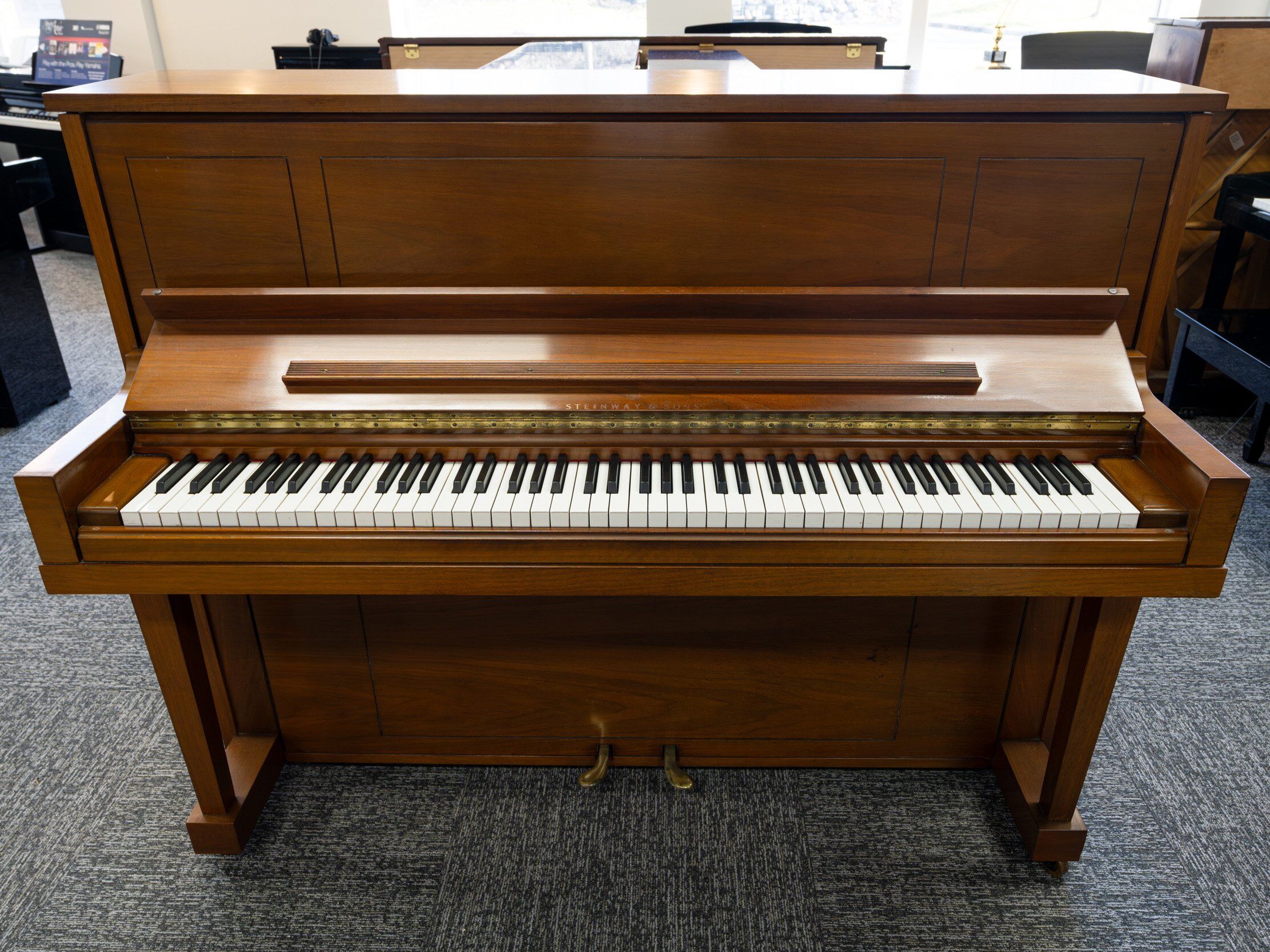 This 1978 Steinway Model 1098, made in the USA, brings the classic Steinway sound into an upright piano package. Range of tone, power, and quick, responsive action make this a versatile and classic instrument. The walnut cabinet is in great shape for its age, and this is a phenomenal piano for the discerning player.