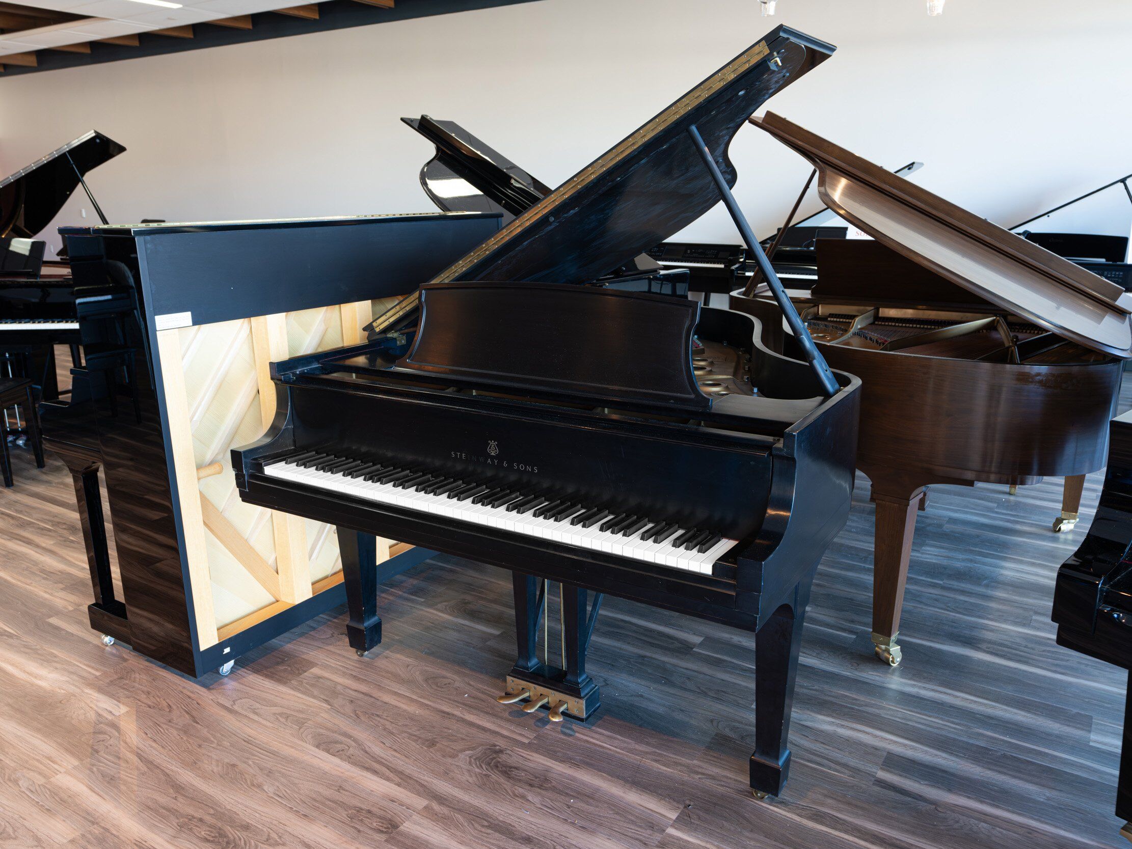 A beautiful instrument to cherish and enjoy for generations! This Steinway grand brings a bona fide stage presence with its sonorous, expressive tone. The action is responsive in all registers and moves with ease and grace. The satin ebony finish is a classic look that will fit right in with your personal decor and style.