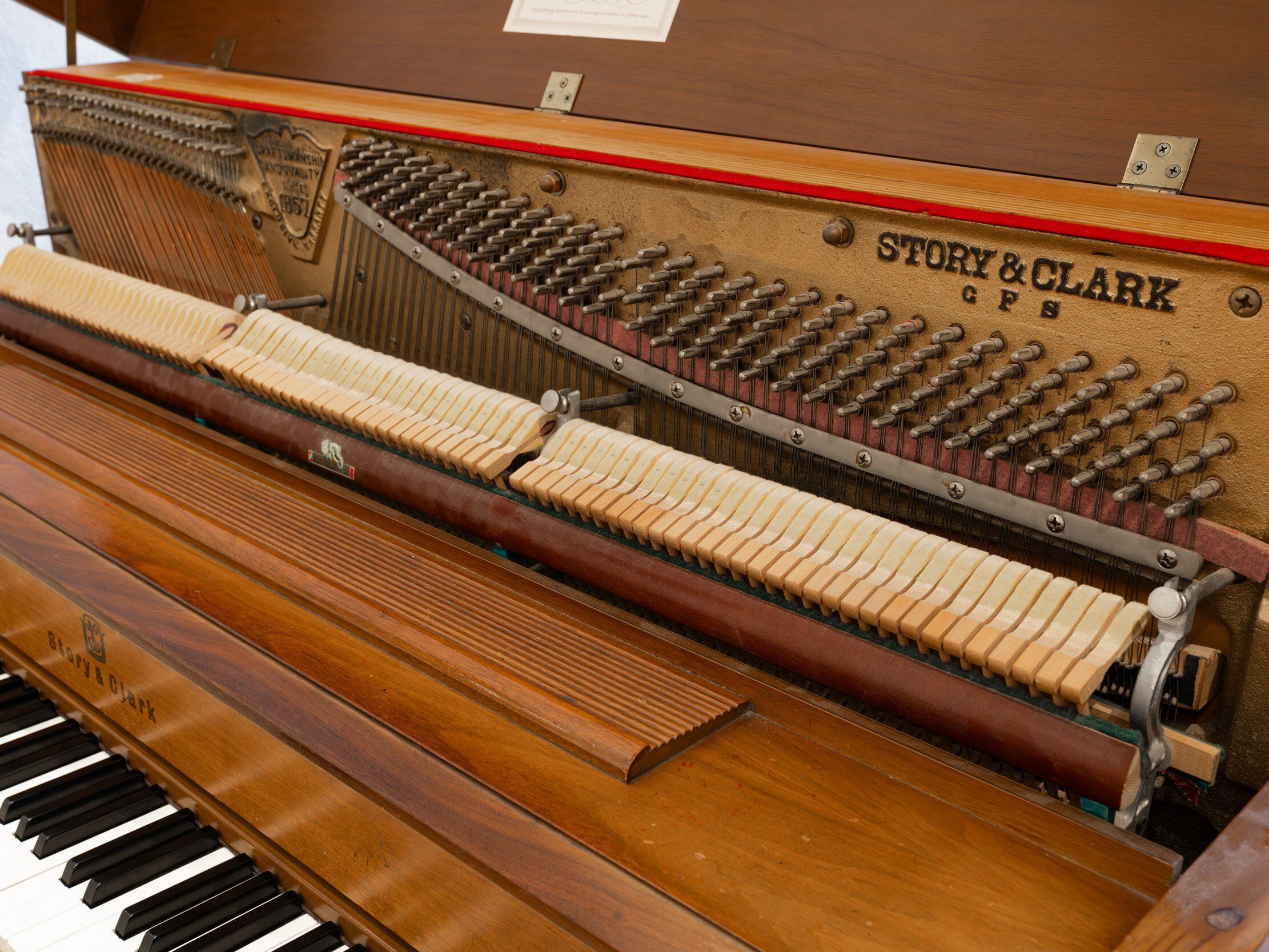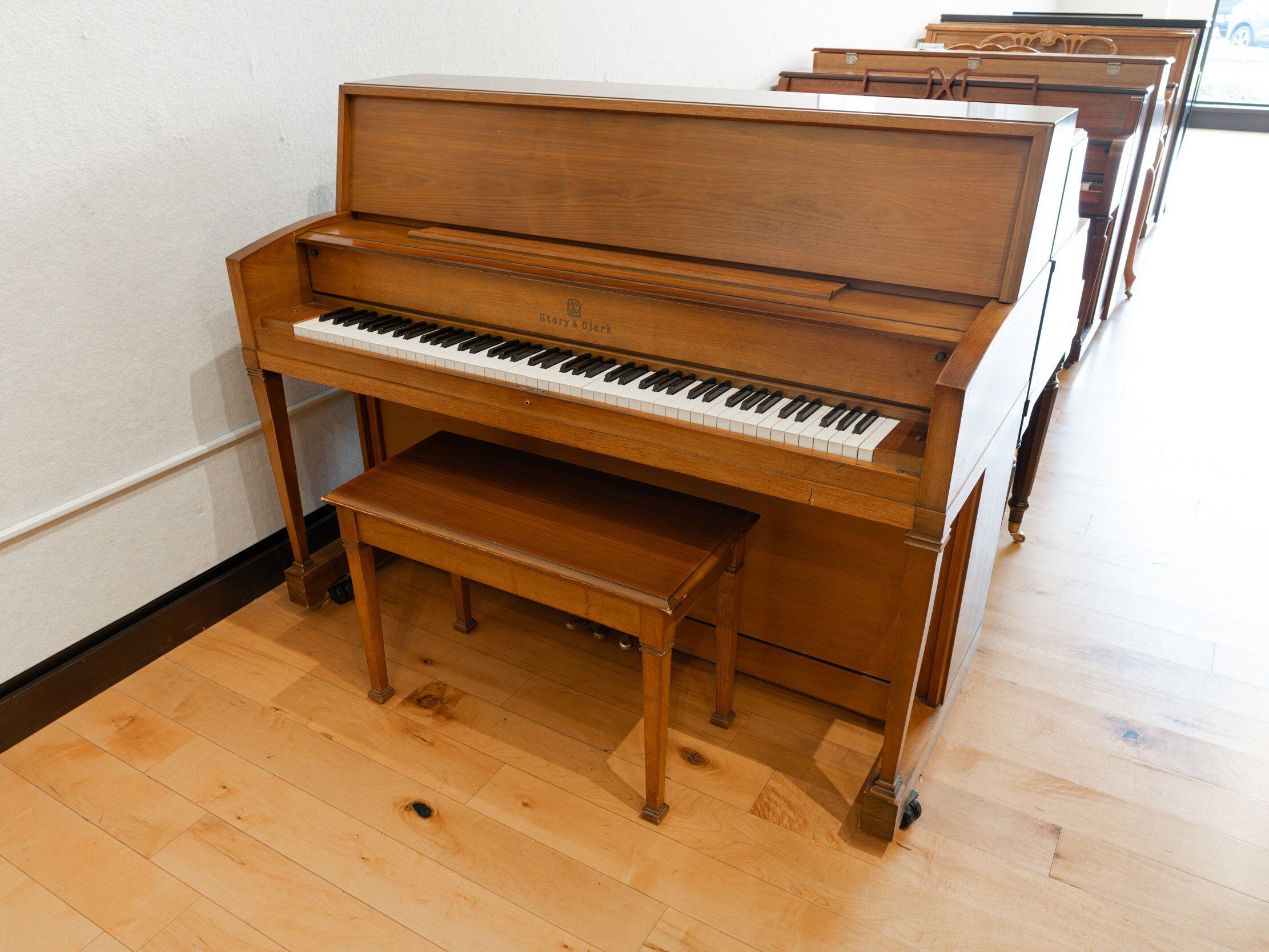A sweet Story & Clark upright. It has a nice, bright sound and a lighter feel. Has a very neat interior. It would fit nicely in a small to medium sized room.