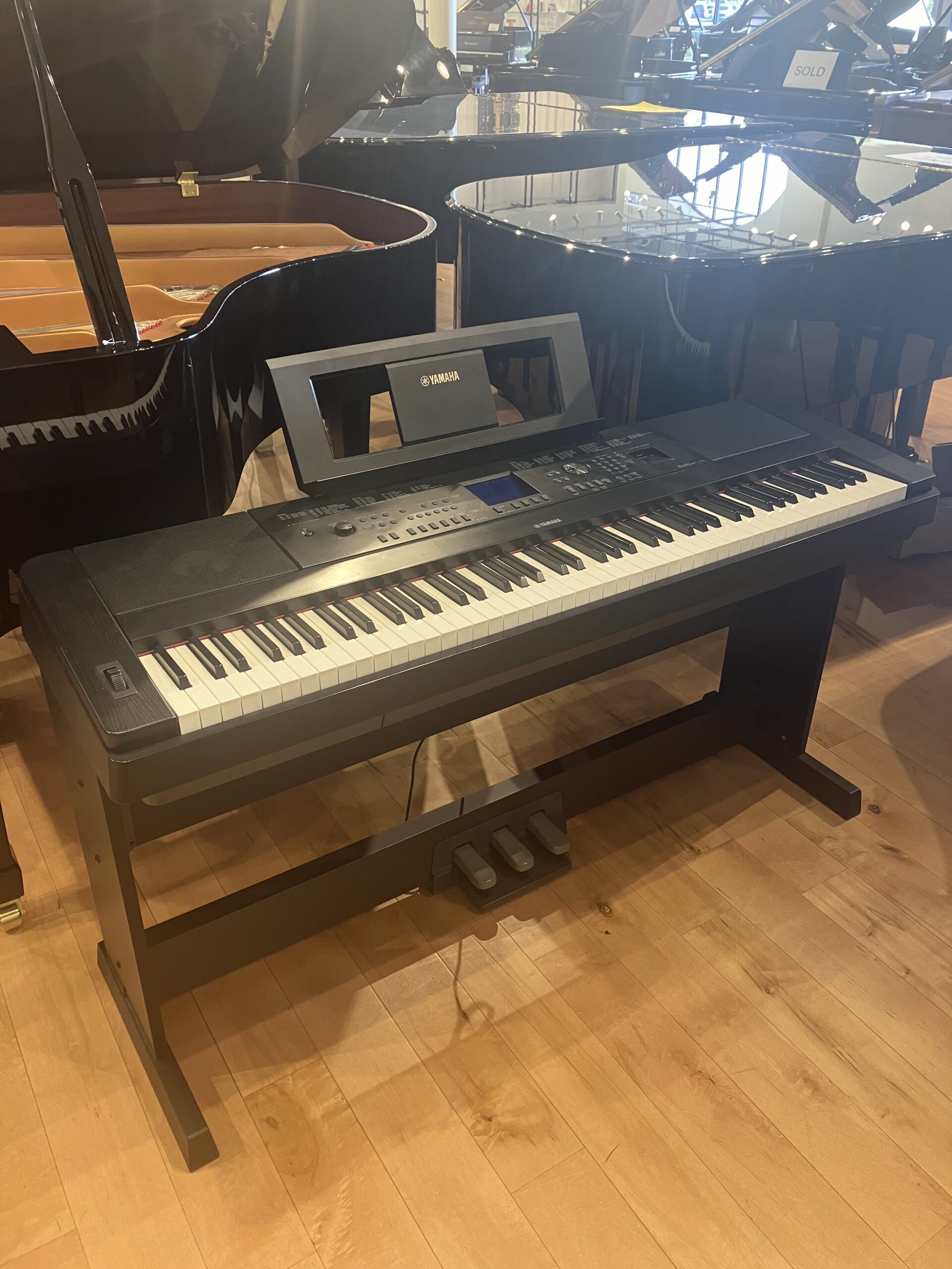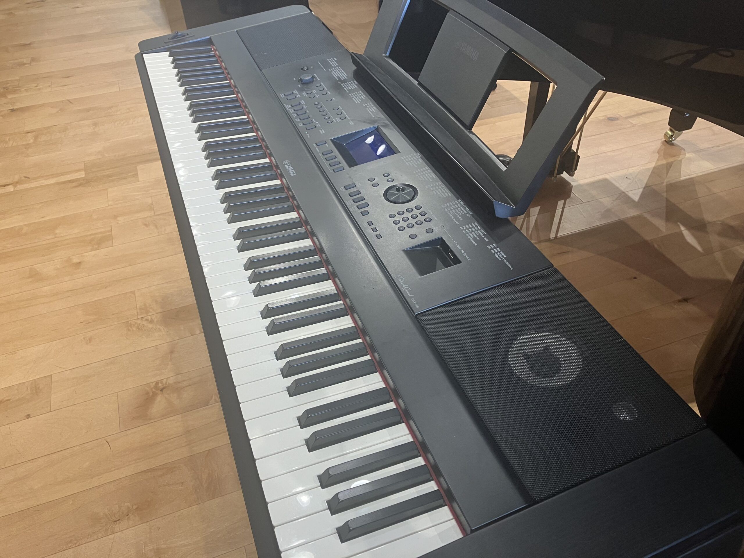A deluxe keyboard with furniture stand and triple pedal unit for grand potential. In good condition and ready to be welcomed home!