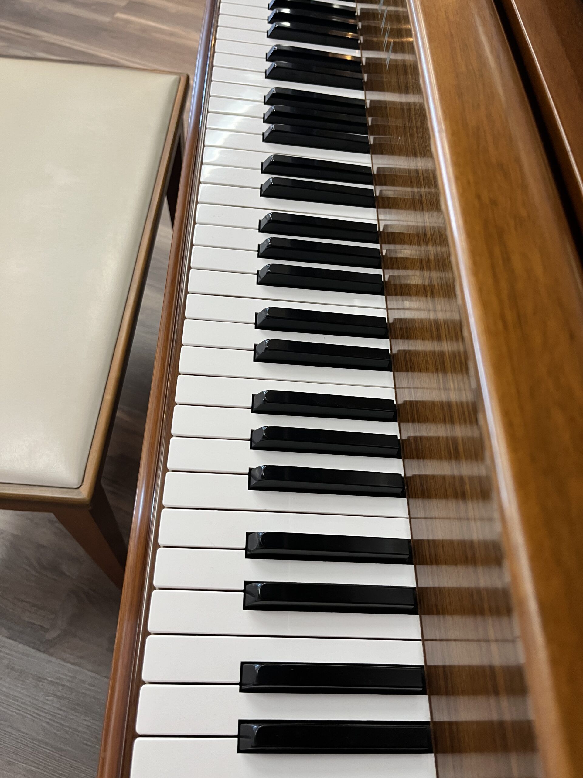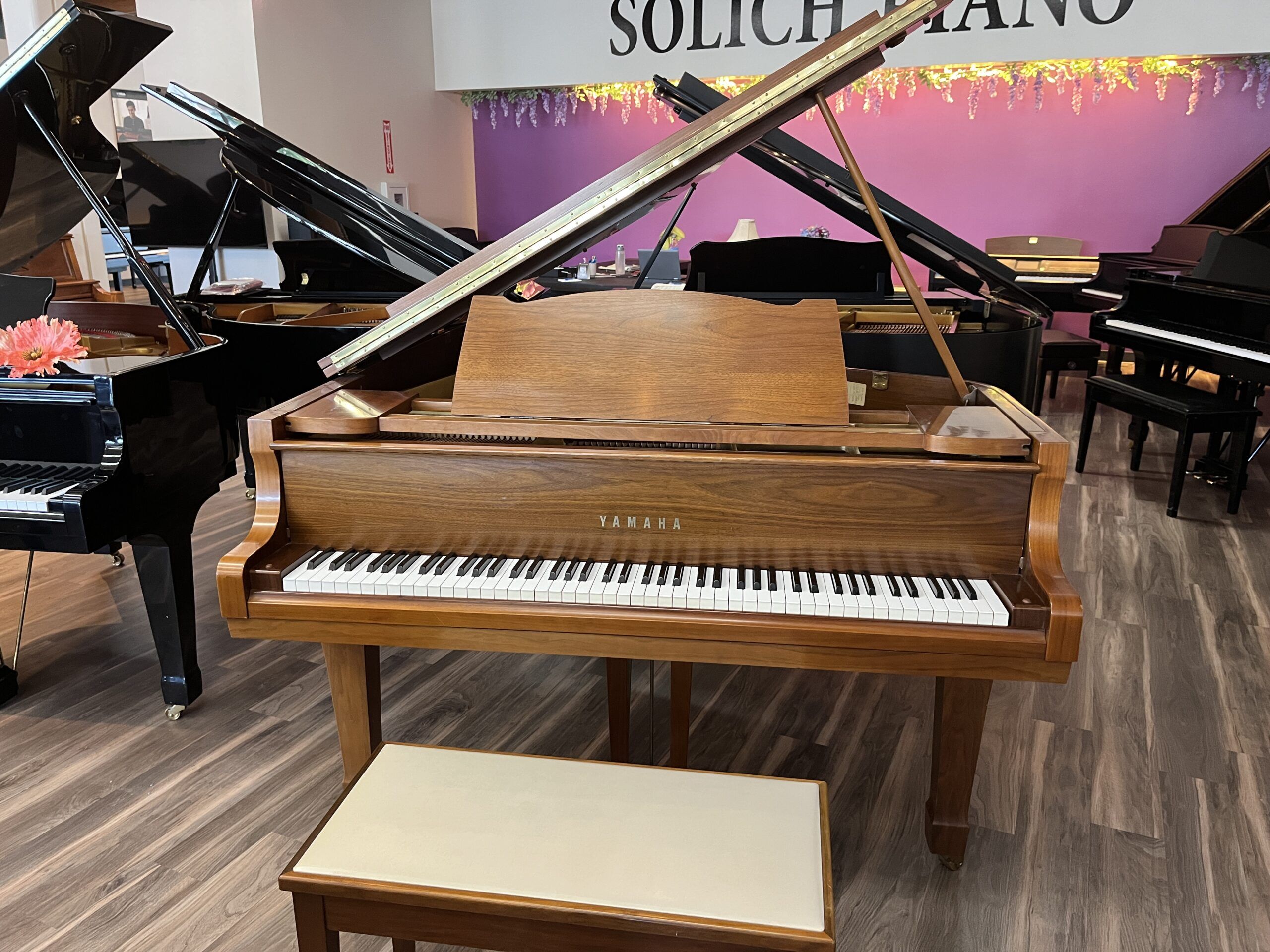 This is the Yamaha G2 – 5’8″ Classic Nippon Gakki Series grand piano in a gorgeous satin walnut finish! Manufactured in Hamamatsu, Japan in 1968. This piano has a responsive action, full tone, and has been well-maintained.