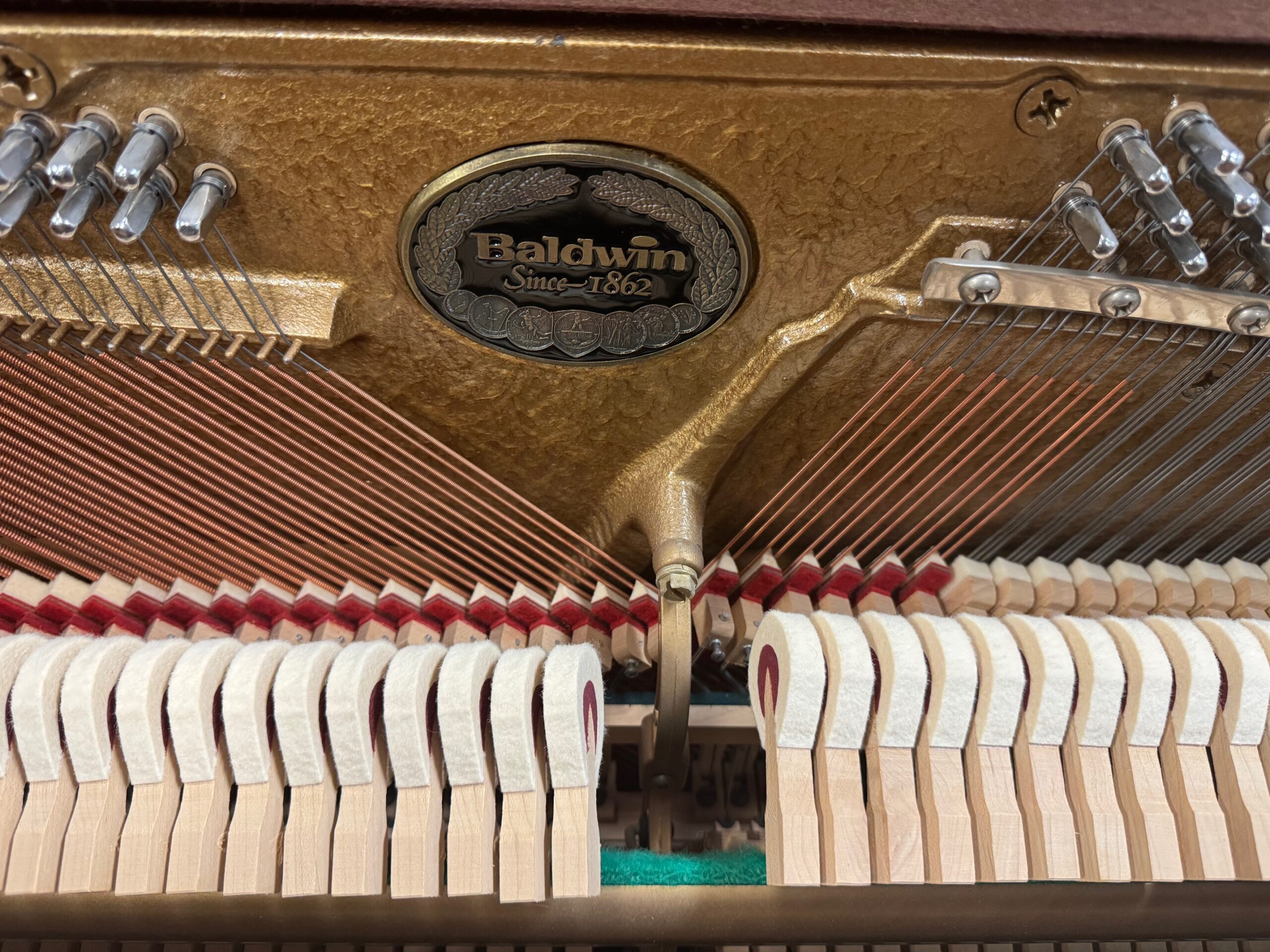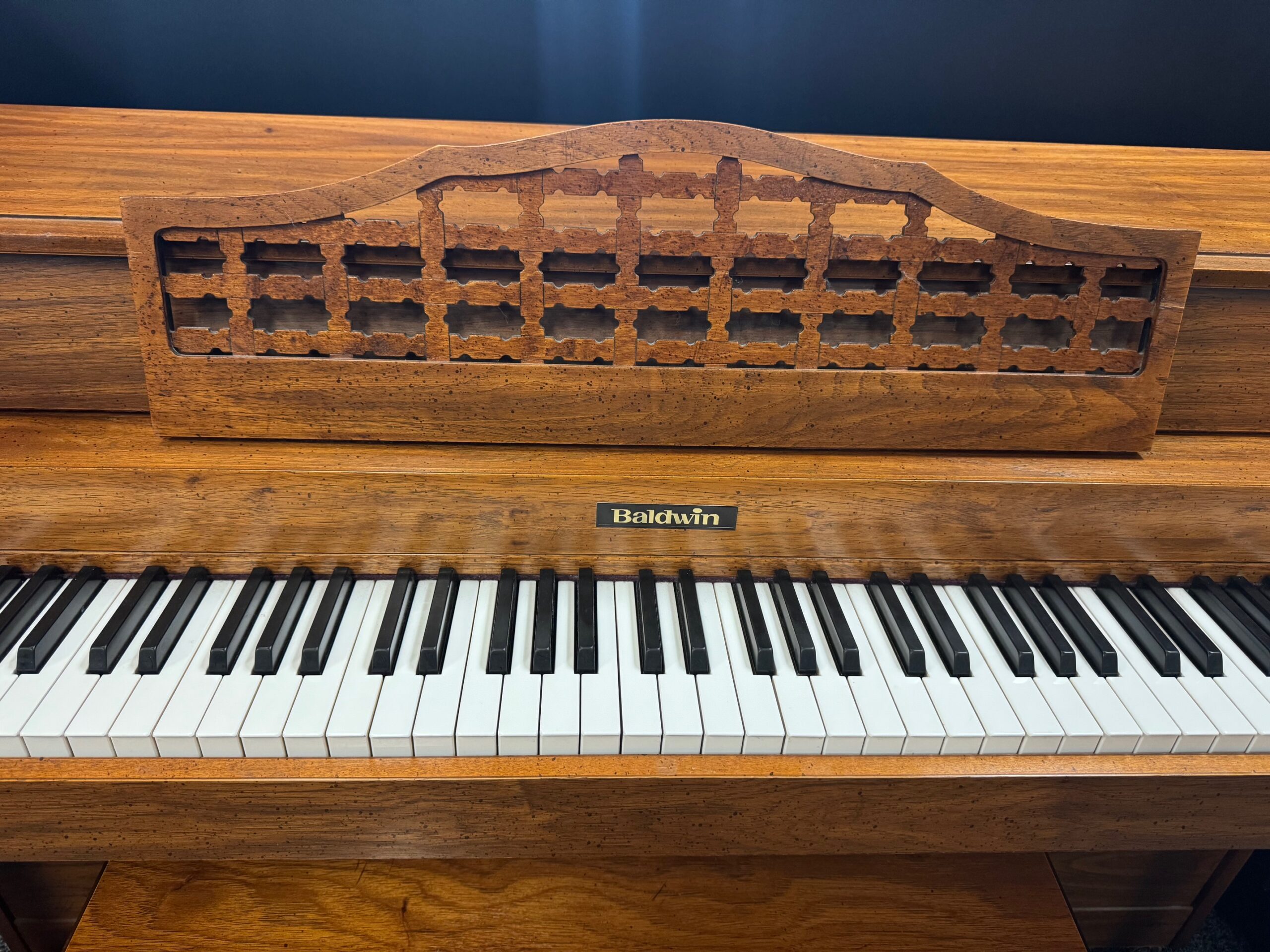 A petite beauty! This USA-made Baldwin spinet was exceptionally cared for by one loving owner before arriving at Solich Piano. Excellent condition, especially the hammers and wooden cabinet.