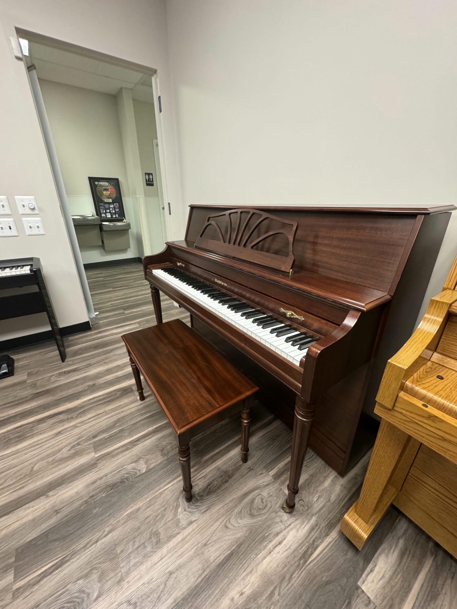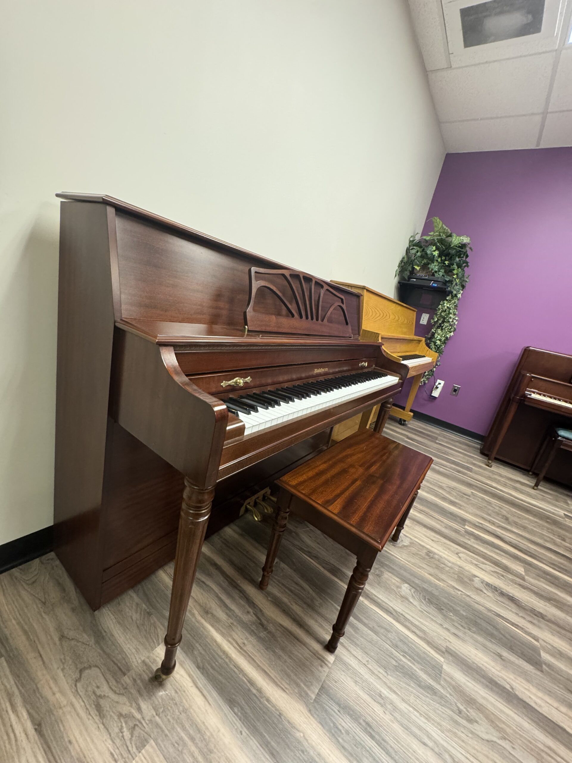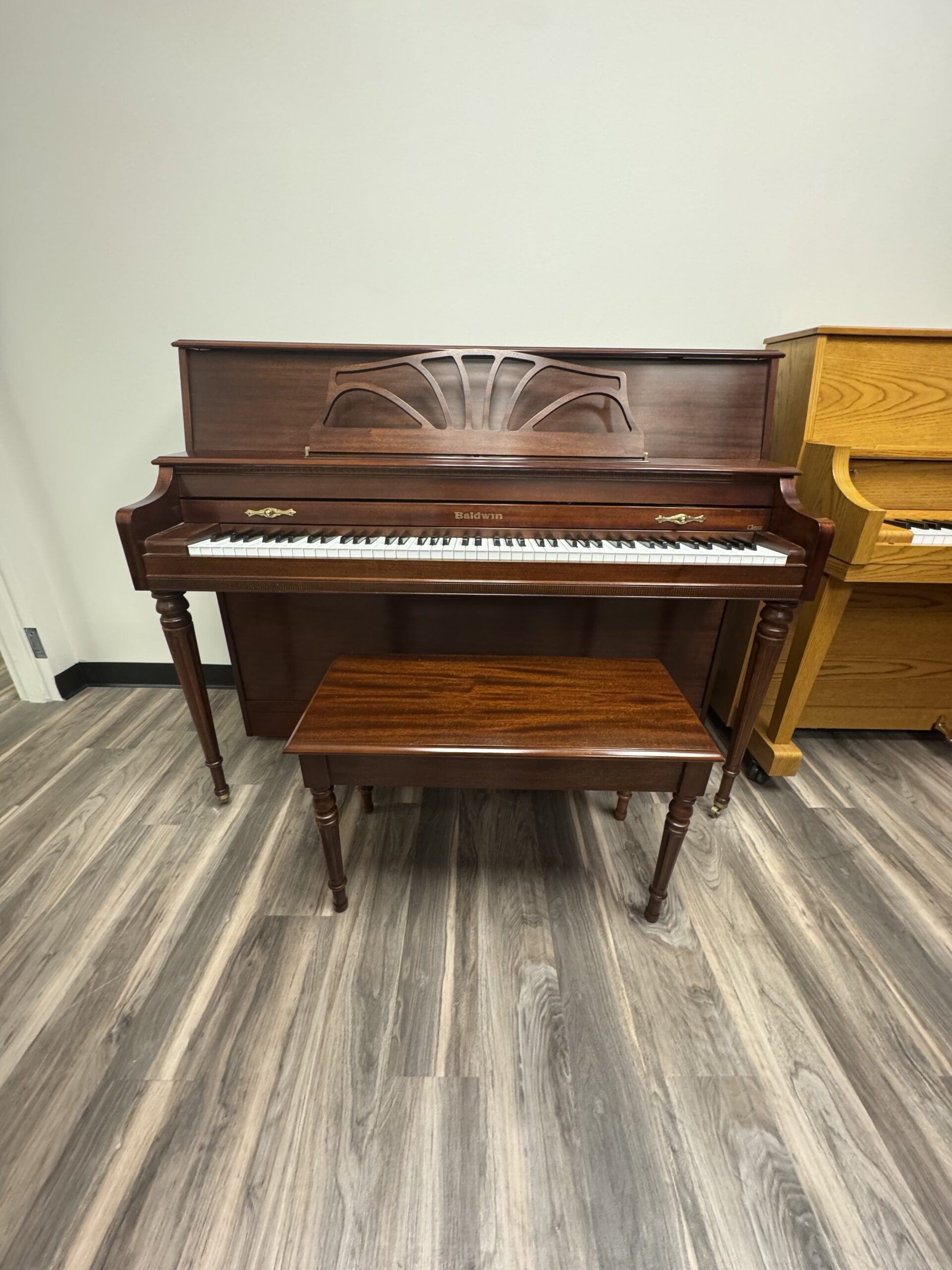 The Baldwin 660 is a 44″ inch upright from 1999 in a classic Mahogany finish and a beautifully ornate cabinet. Featuring a tender and expressive sound, this piano is a great fit for any home.