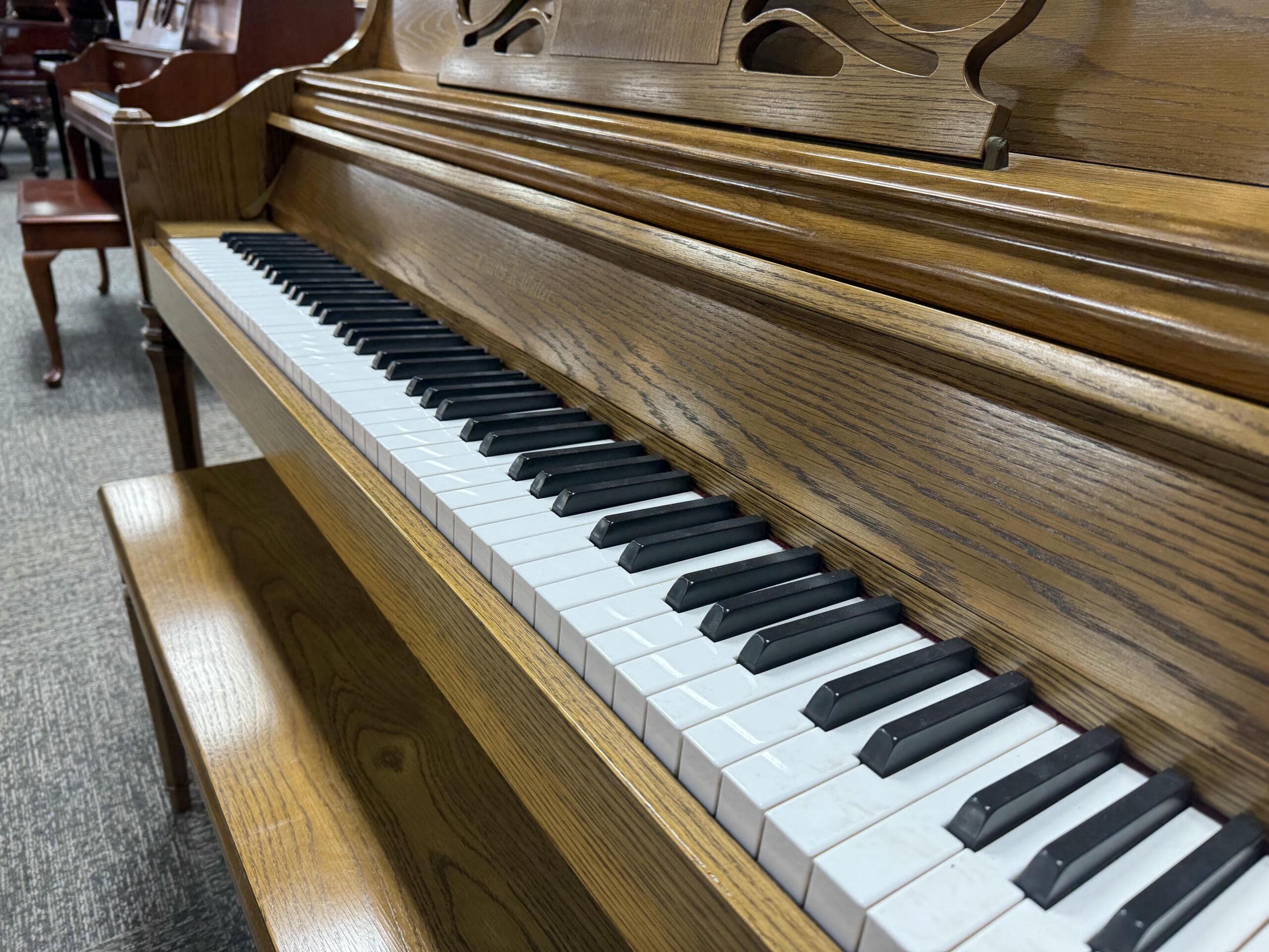 Built in the USA, this oak Charles Walter is both a versatile and expressive instrument as well as a gorgeous furniture piece. Perfect for any home and any player!