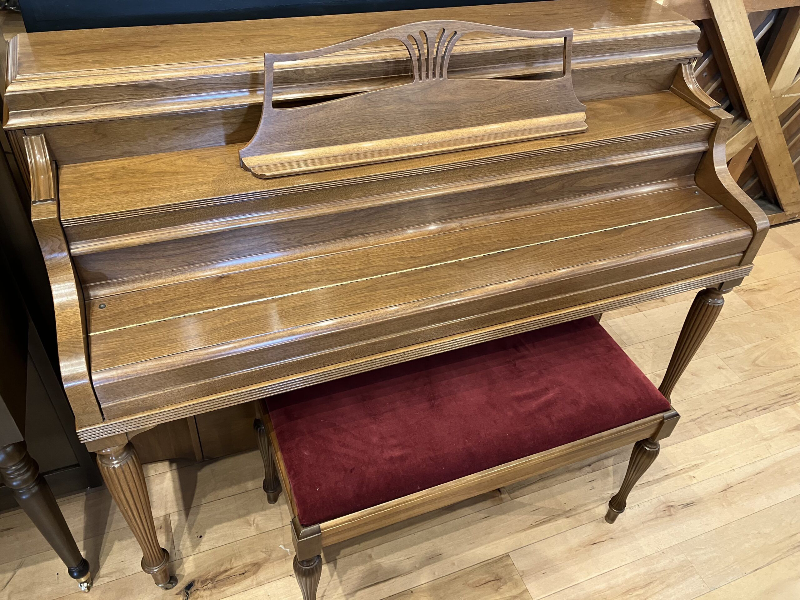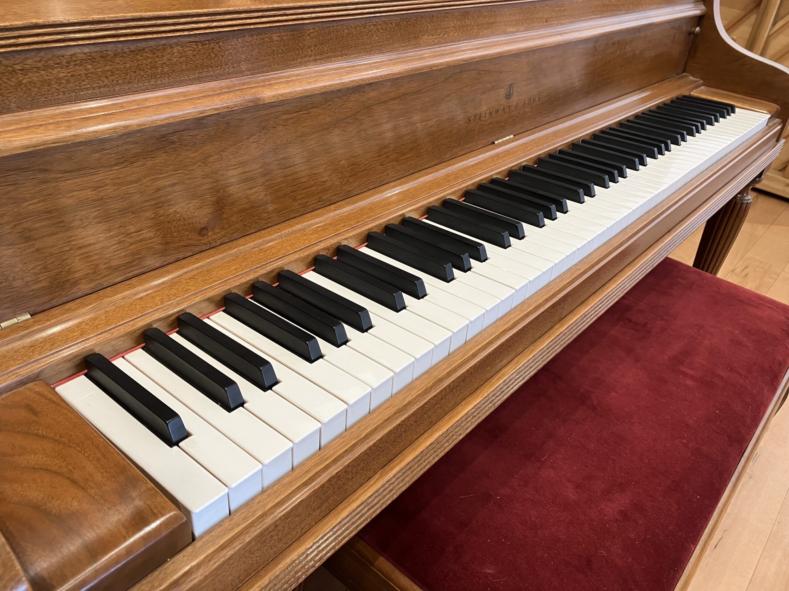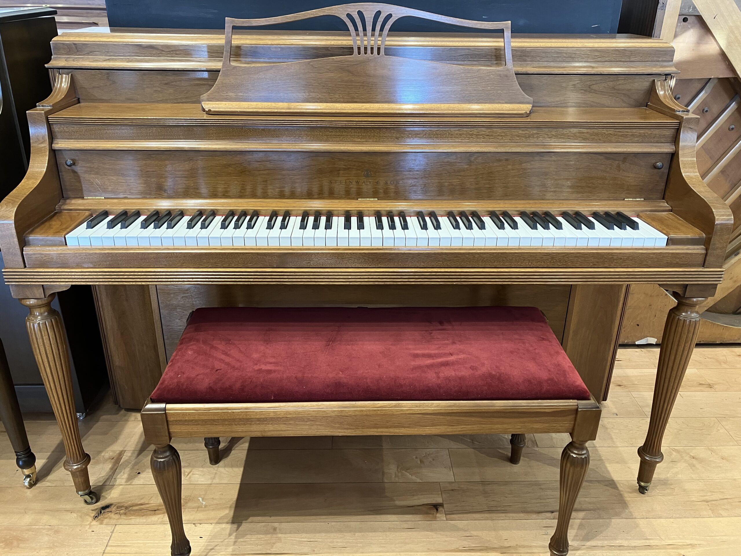 An elegant American classic with an equally stylish bench! The Model F was one of Steinway & Sons most popular upright models during the 20th century. This piano was well maintained and cared for by one prior owner. The finish is in superb condition.