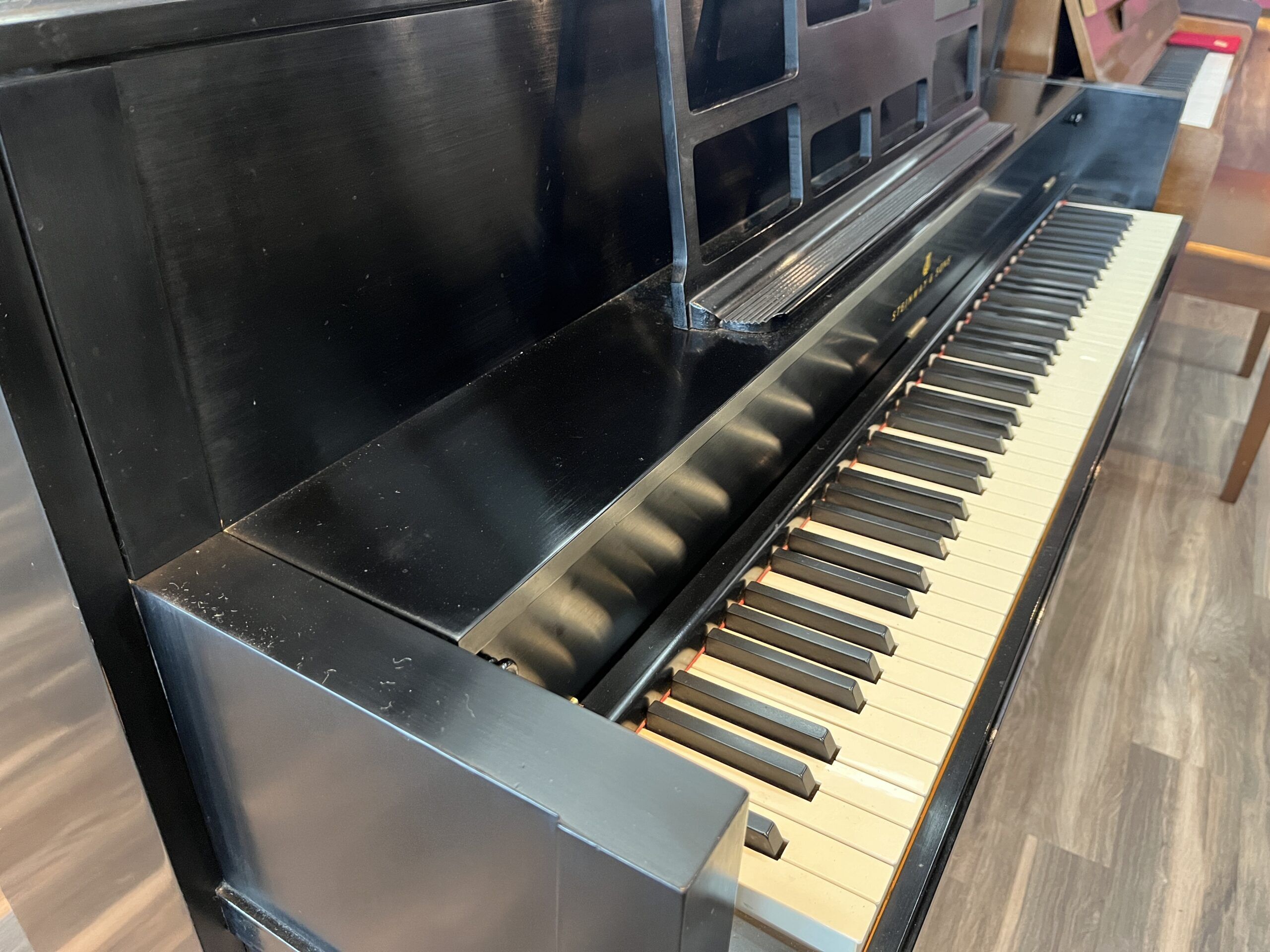 Just look at this beauty! Smaller in size and bigger in sound, this high-quality, attractive piano will fit into most spaces in the home, yet has an incredibly full and expressive sound. A used Steinway piano like this has wonderful musical and aesthetic character and can be an excellent value for a discerning piano buyer.