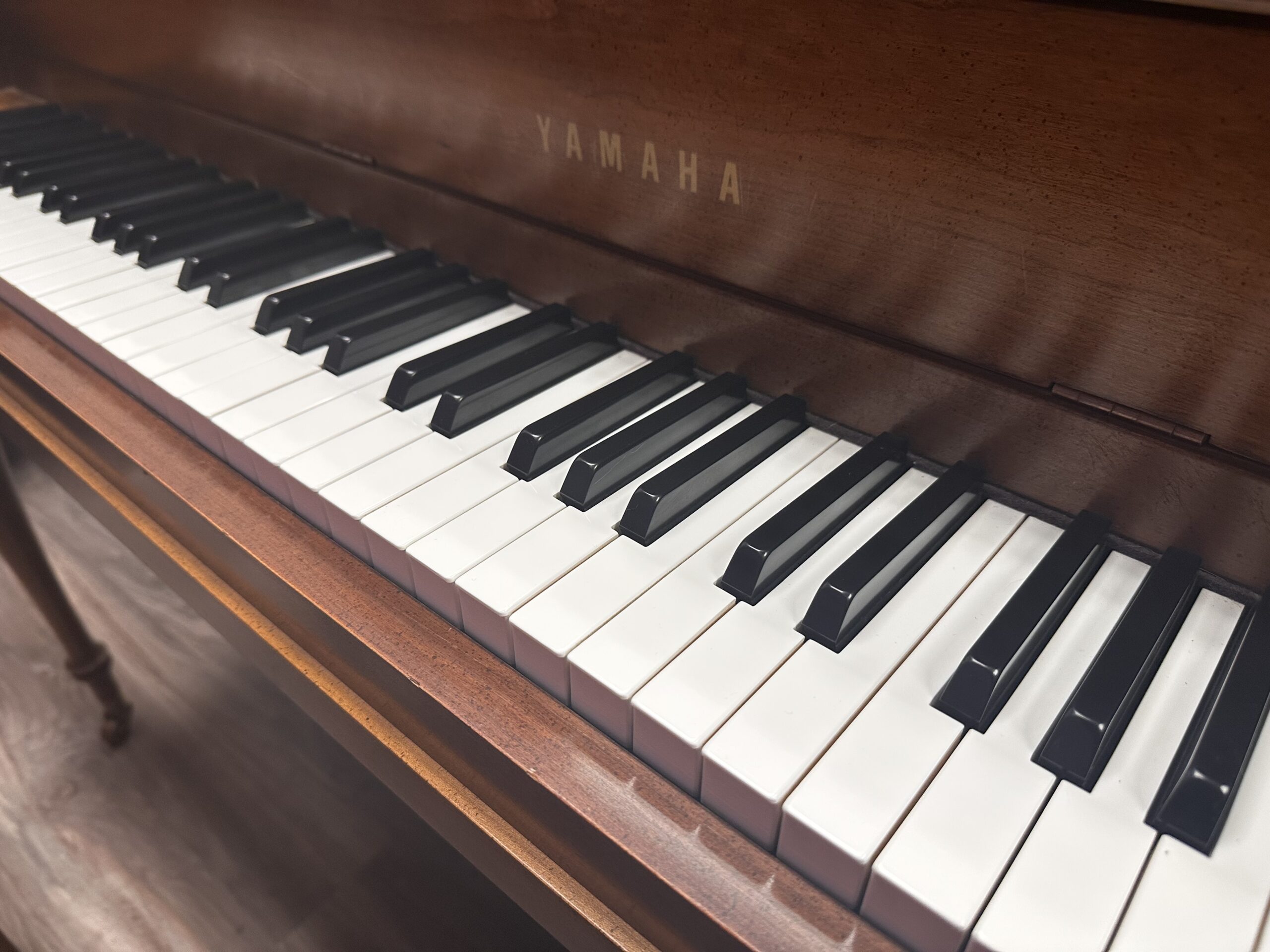 Very nice Yamaha m-216 console piano with a cherry finish. Very little wear on hammers and action parts. Plays light and even. Tone is typical Yamaha… Bright and beautiful!