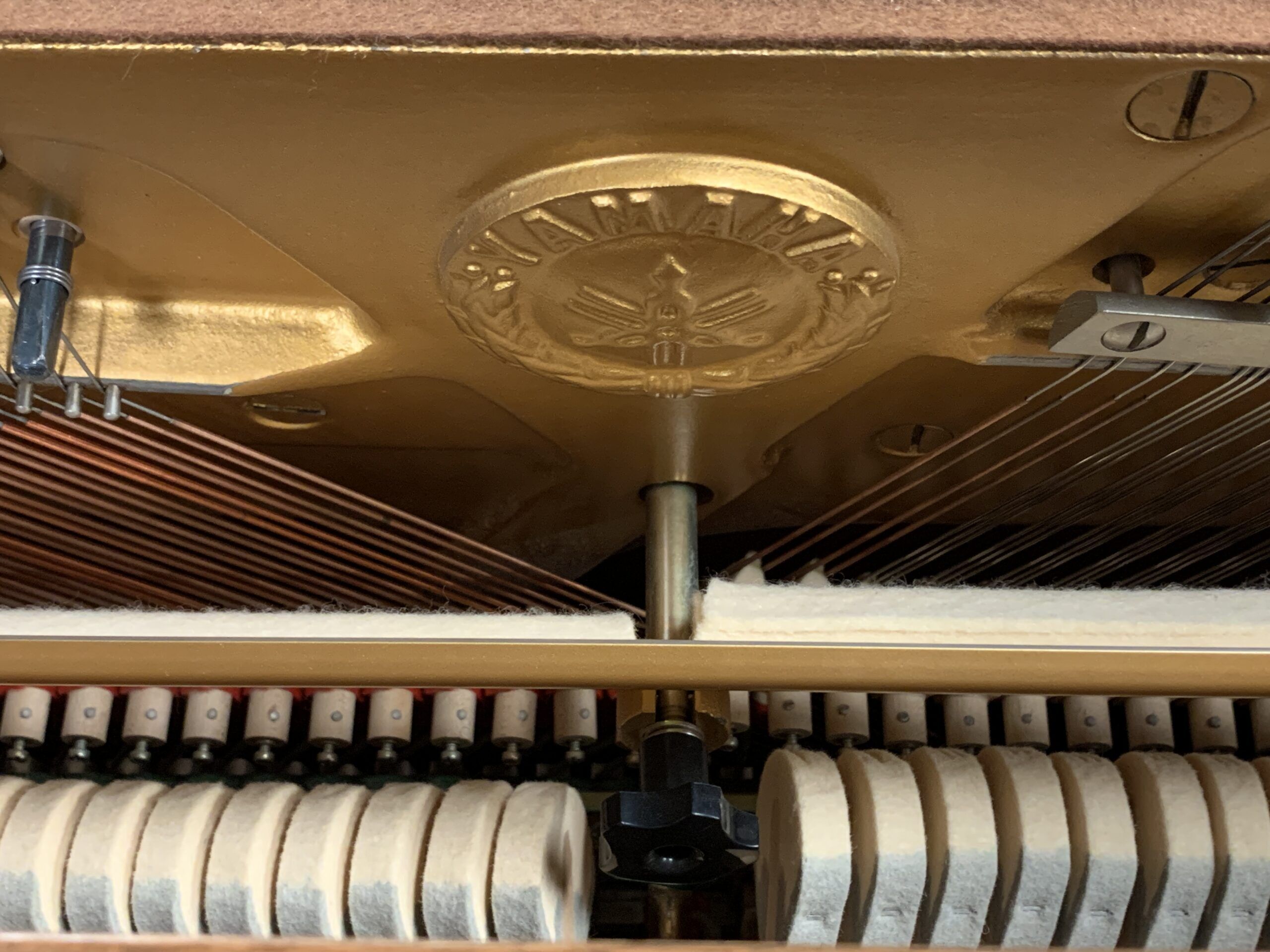 This charming upright is a delight to play! The keys move with ease and the tone has clarity and character. The walnut cabinet is in a mid-century continental design first popularized in Europe. This piano is complete with three pedals. The middle “practice” pedal allows you to mute the sound of the piano for quieter play. Yamaha’s P2 is a perfect find for a adult beginners and young families looking to bring music into their life.