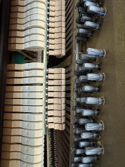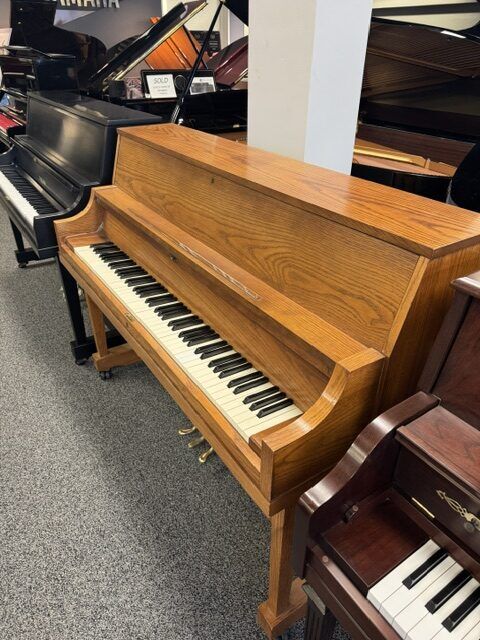 A solid example of Yamaha craftsmanship! This piano continues to shine in its later years with excellent tuning stability and key response. The Yamaha P202 has a sostenuto middle pedal, matching that of a grand piano.