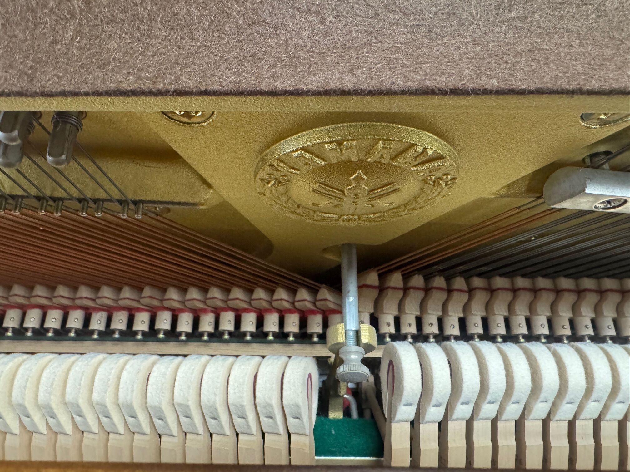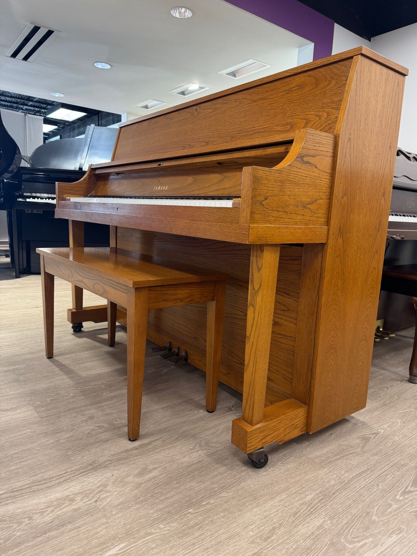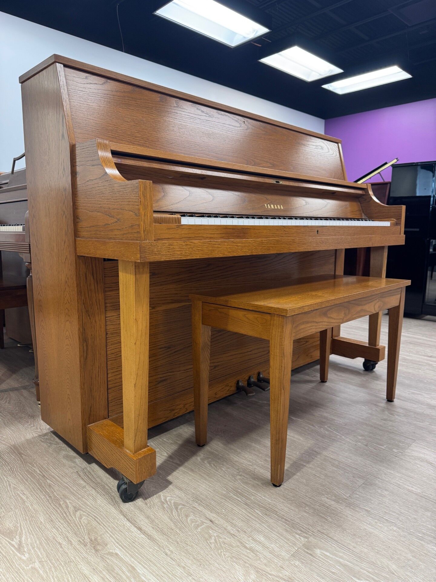 The Yamaha P22 is an institutional studio upright built to last. This American-made workhorse features a solid Sitka spruce soundboard and reinforced toe-block cabinetry, offering exceptional stability. Highly regarded by technicians for its “T” prefix serial number, it delivers a precise, professional touch and a clear tone that remains a gold standard in the used piano market.