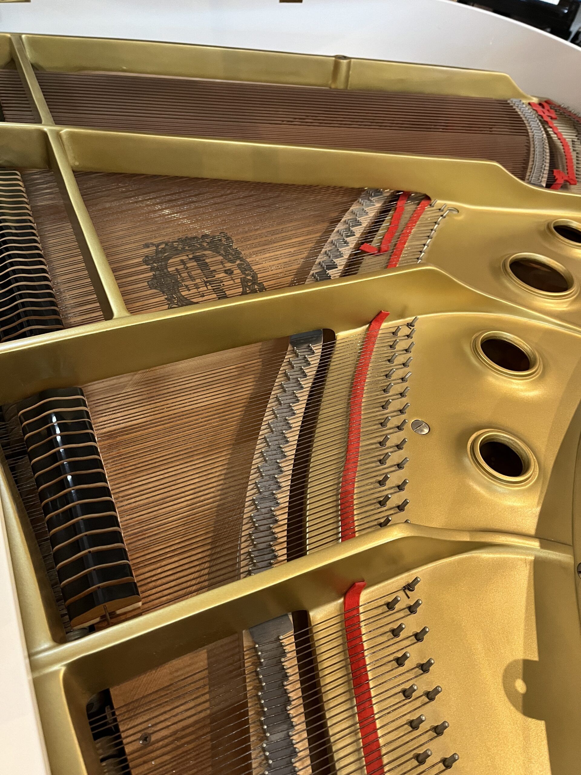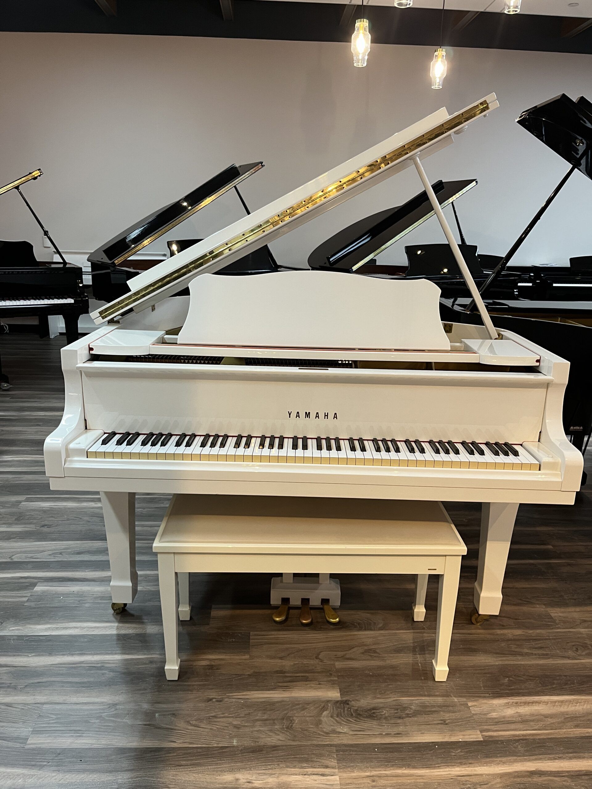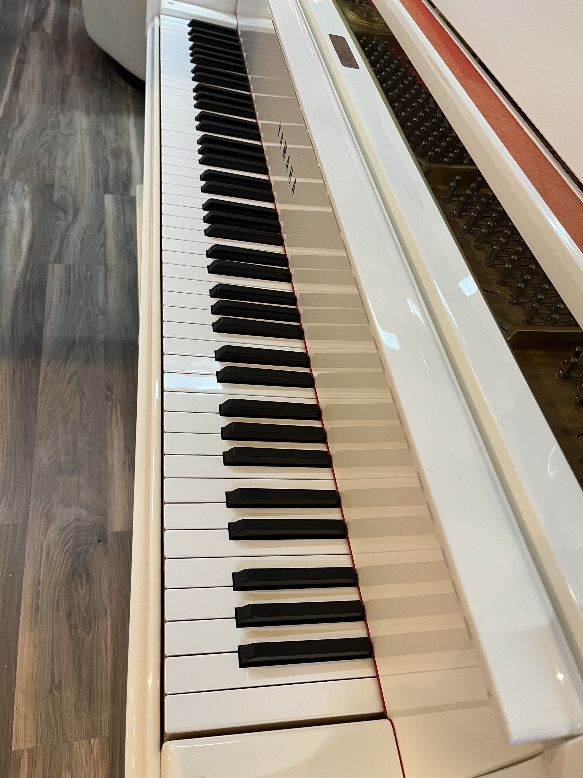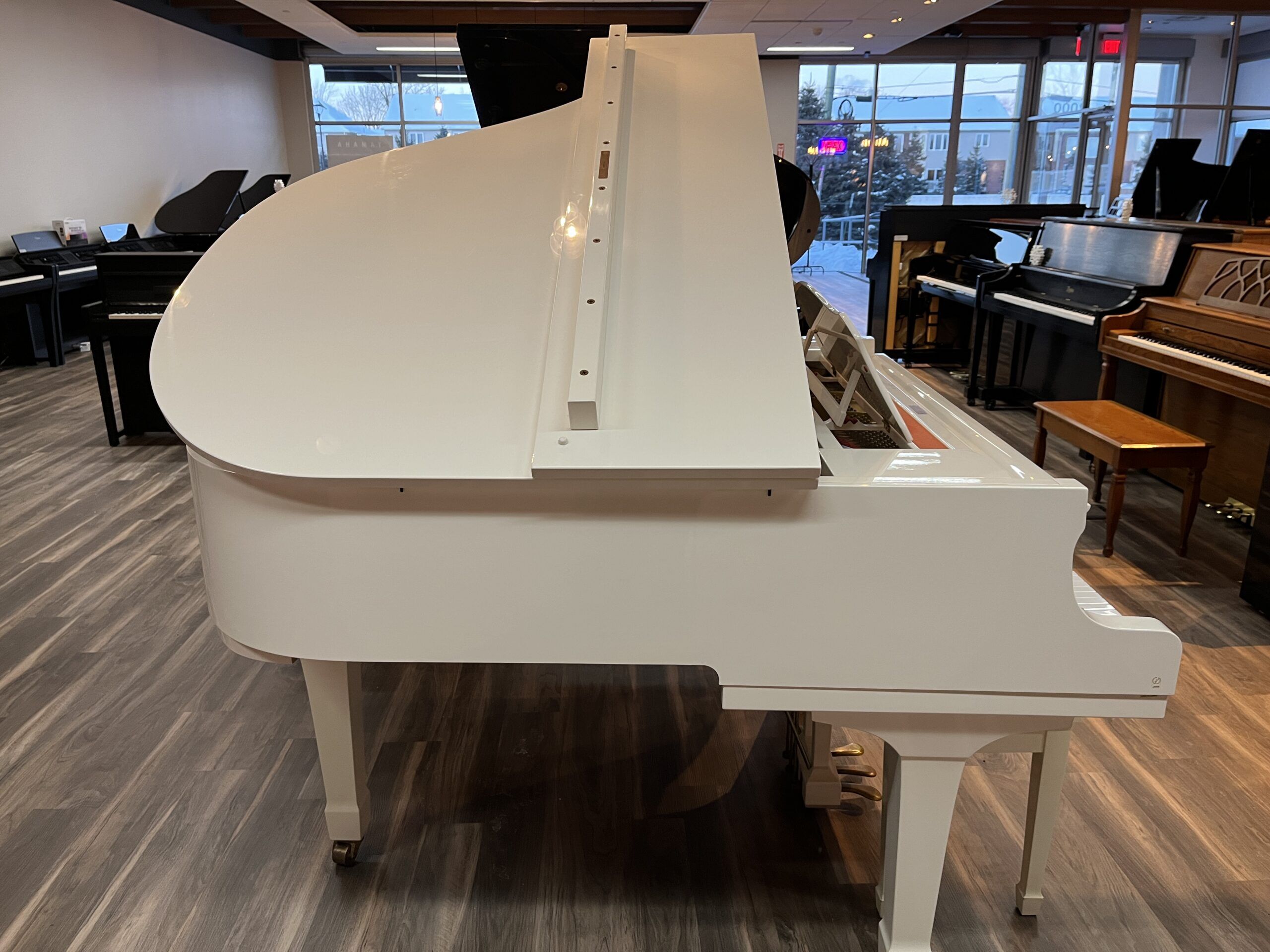 This gorgeous polished white Yamaha G1 is smaller than other grand pianos, making it a wonderful option for those who want the beauty of a grand piano, but don’t have a large space. It was made in Japan from the highest quality materials, and it is built to last. The G1 measures perfectly at 5’3″, which is ideal for most homes and studios.