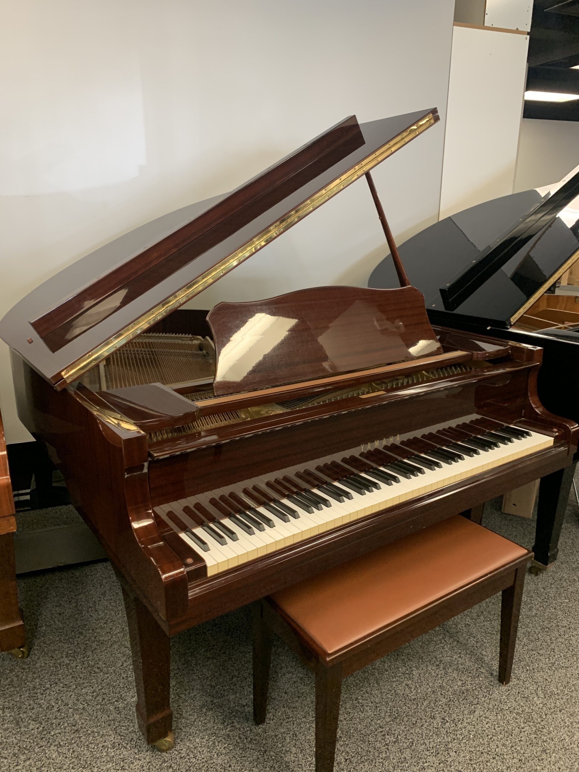 An eye-catching find! This classic Yamaha baby grand has a vibrant, clear tonality and light, responsive action. The polished mahogany finish has been well cared for and is in excellent condition. Perfect for spicing up your space with music and style!