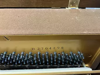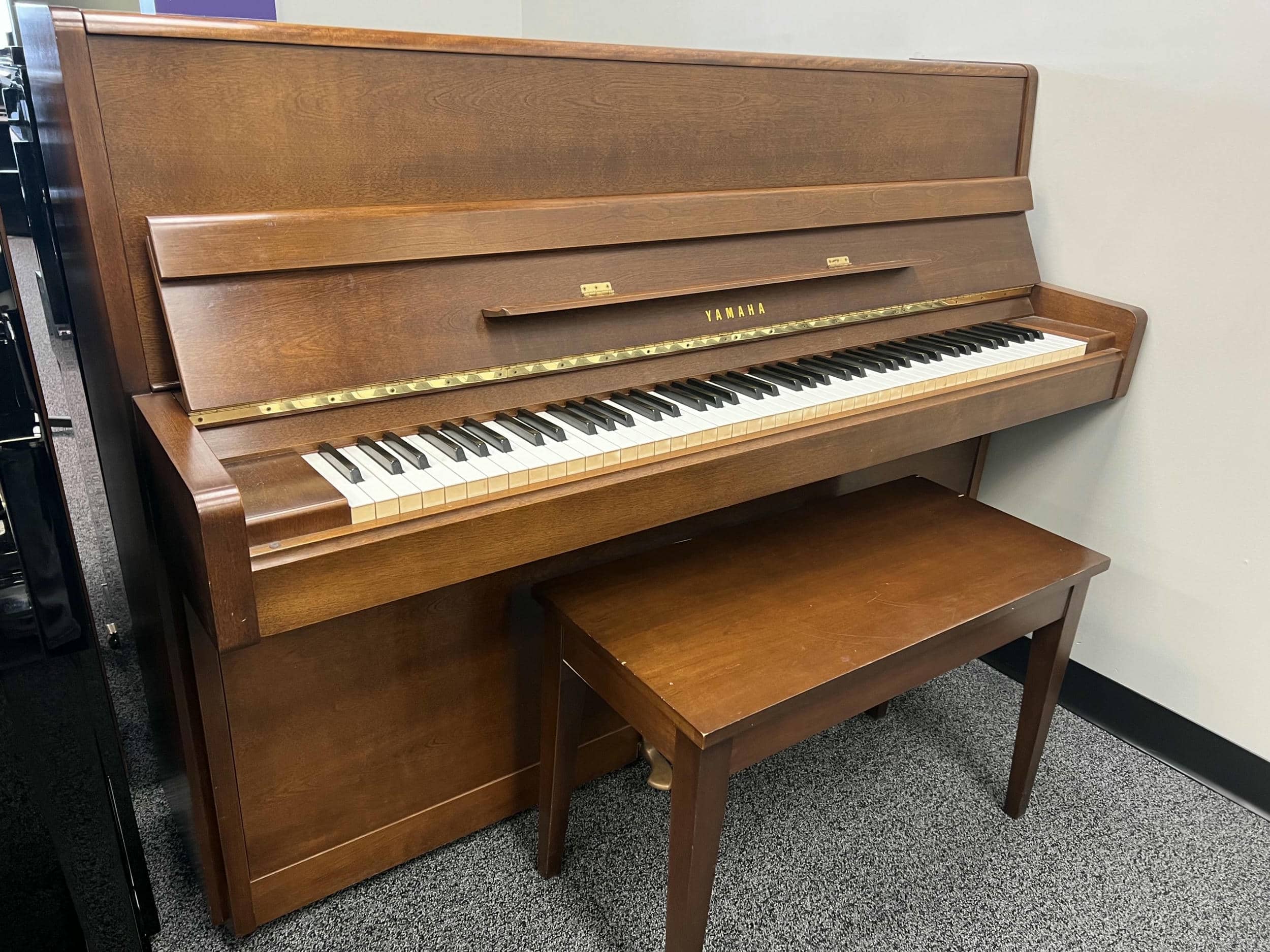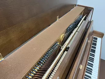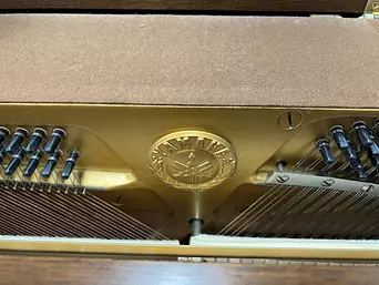 This lovely Yamaha Studio was made in Japan in the late 1970s. It has a wonderfully developed character. The cabinet is a European-style console, with a walnut finish. This piano really is a joy to play, the hammers are in very good shape and they respond quite dynamically for a piano of its age.