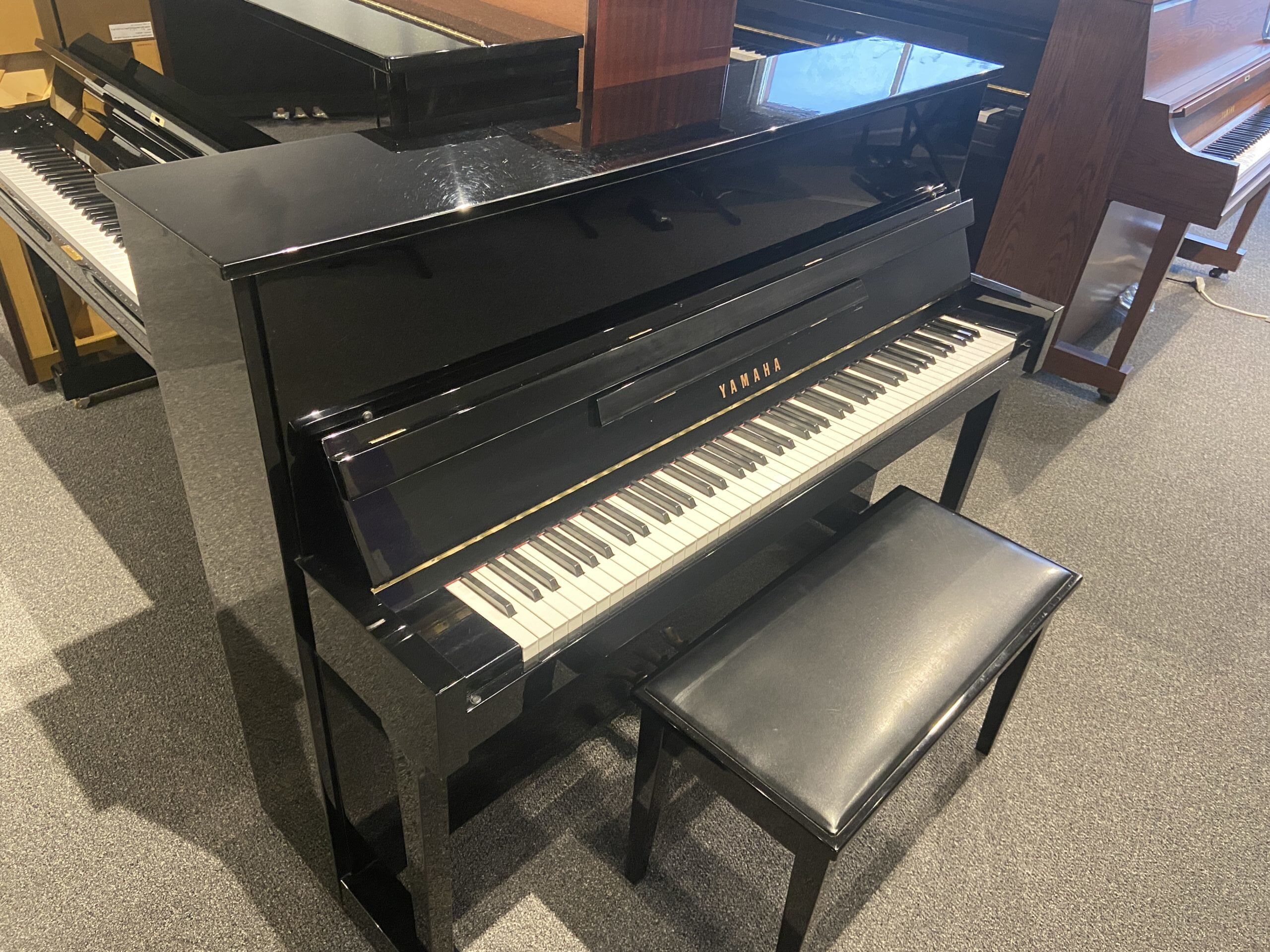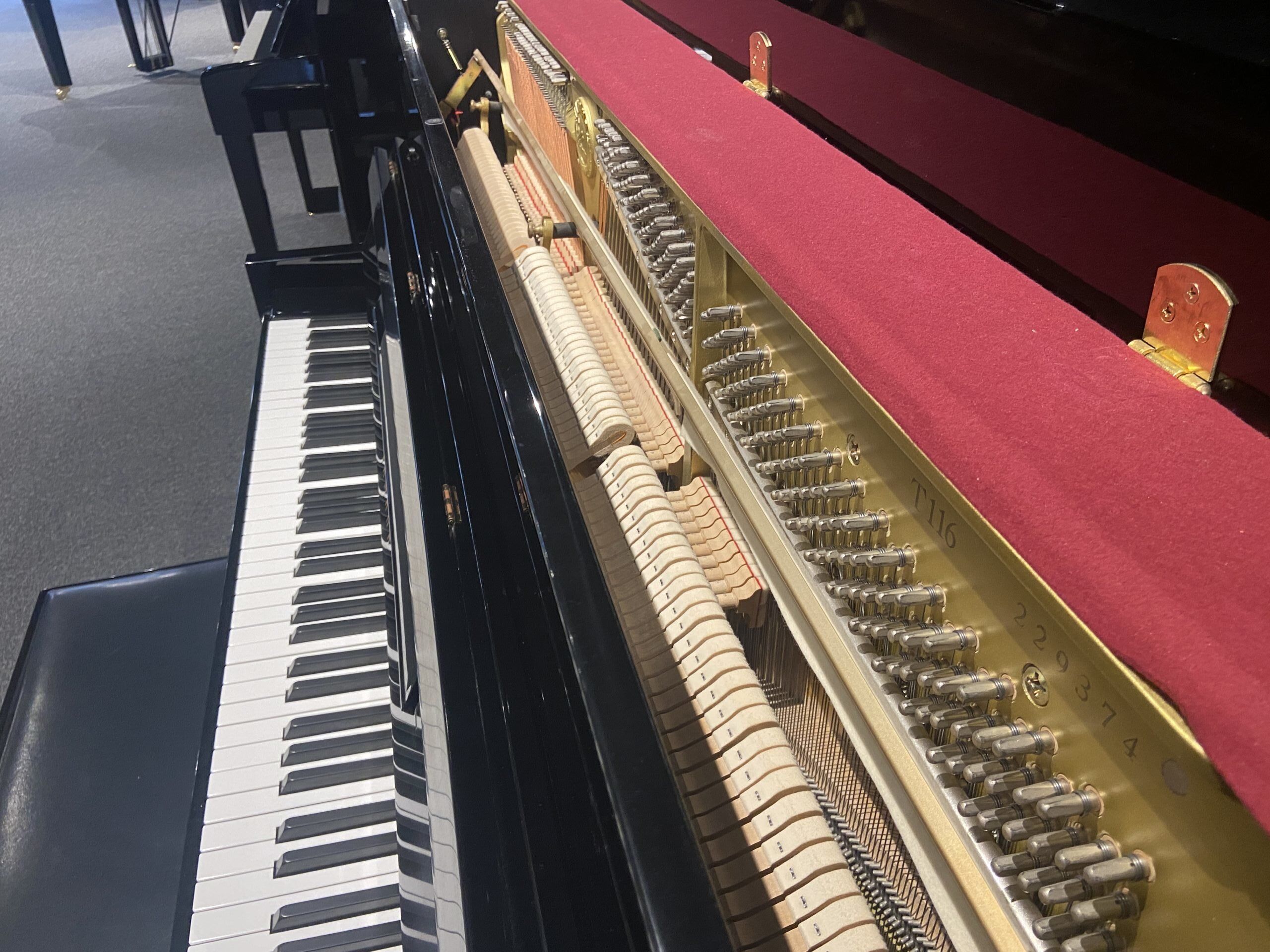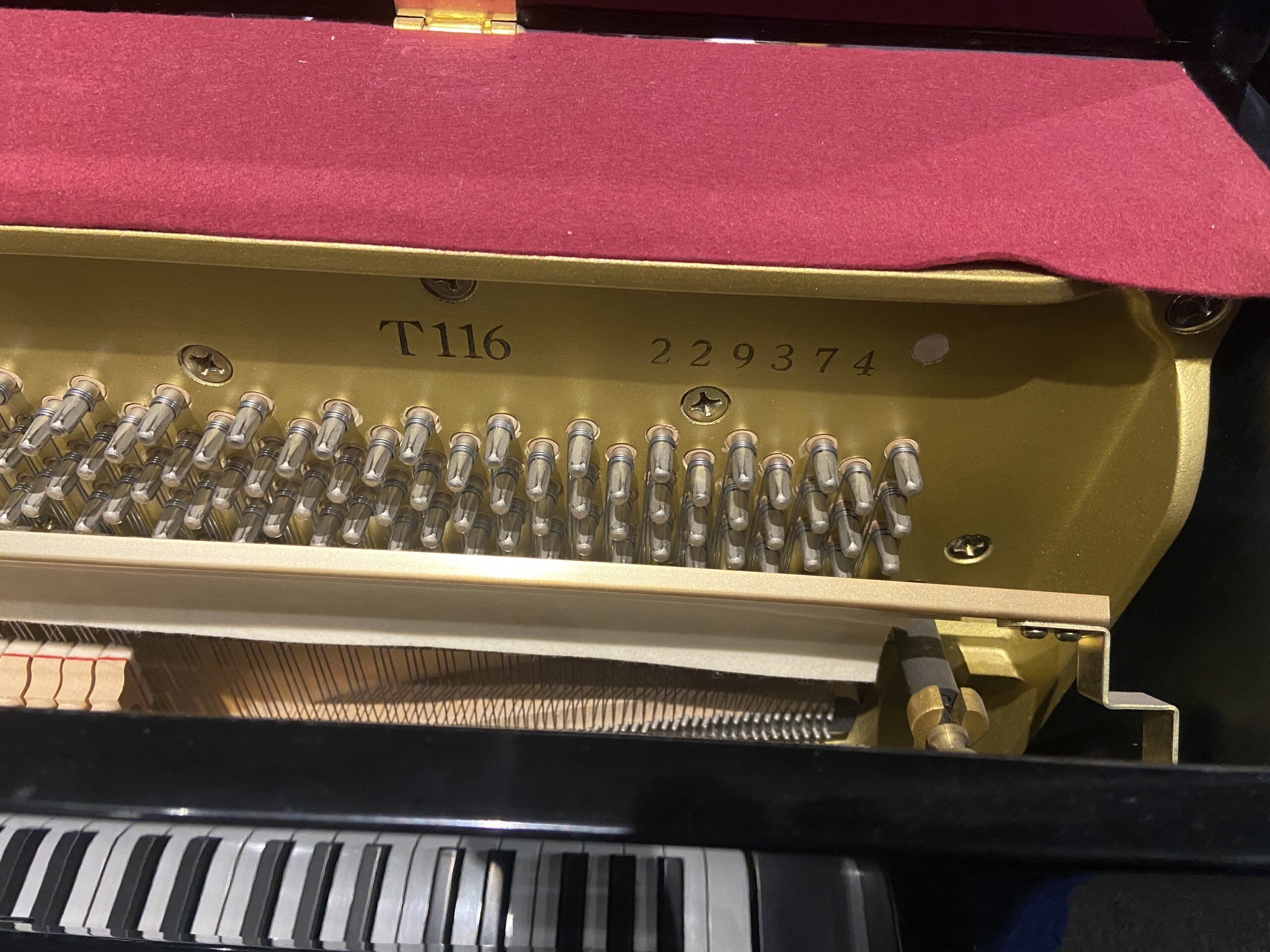 This 1999 Yamaha T116 was produced in the USA with Japanese design. At 45″, this instrument has a tonal range and depth of expression that competes with that of taller uprights. It plays with responsive action, features a classic polished ebony finish, and is a serious piano that can be had at a less serious price!