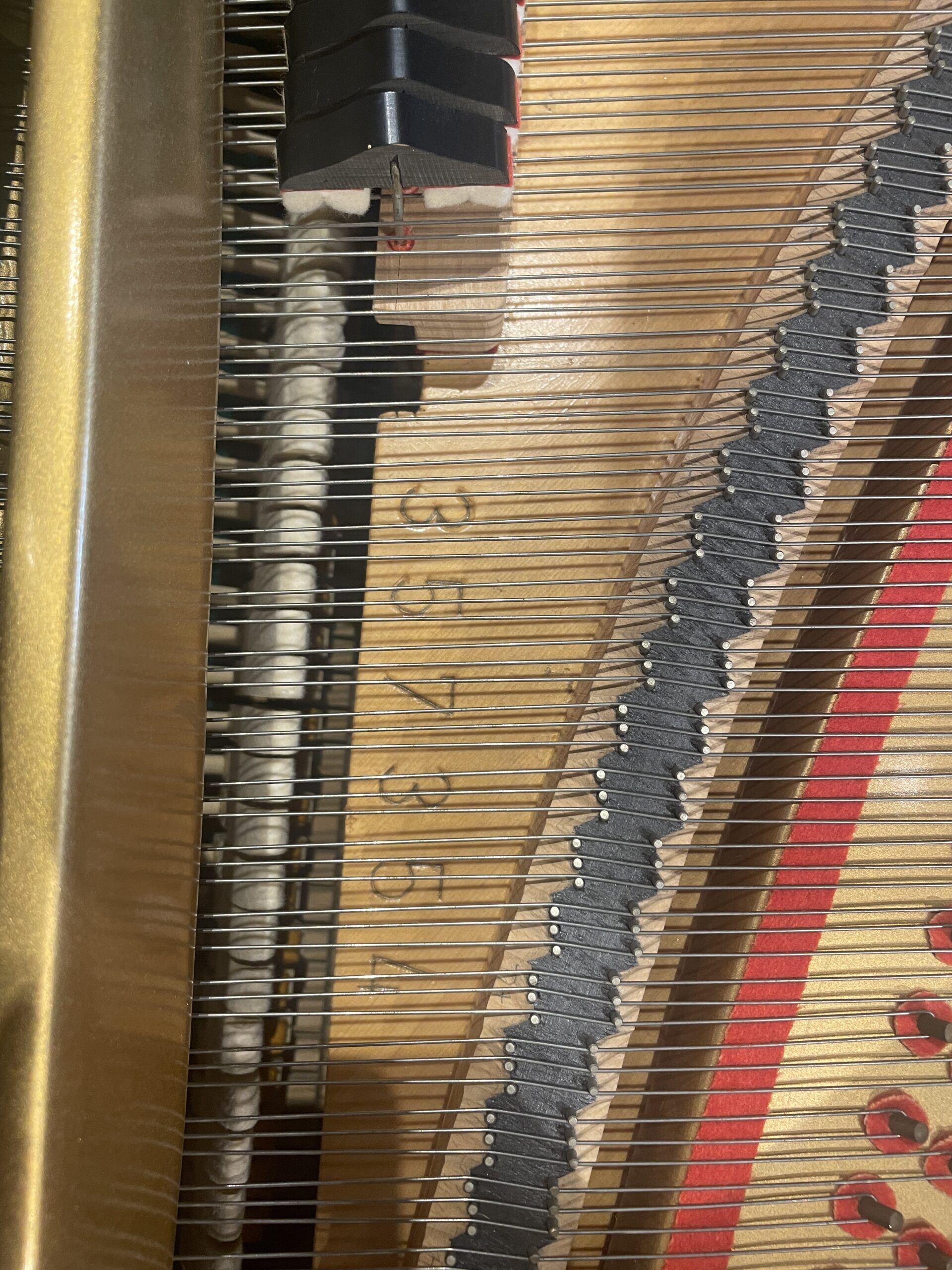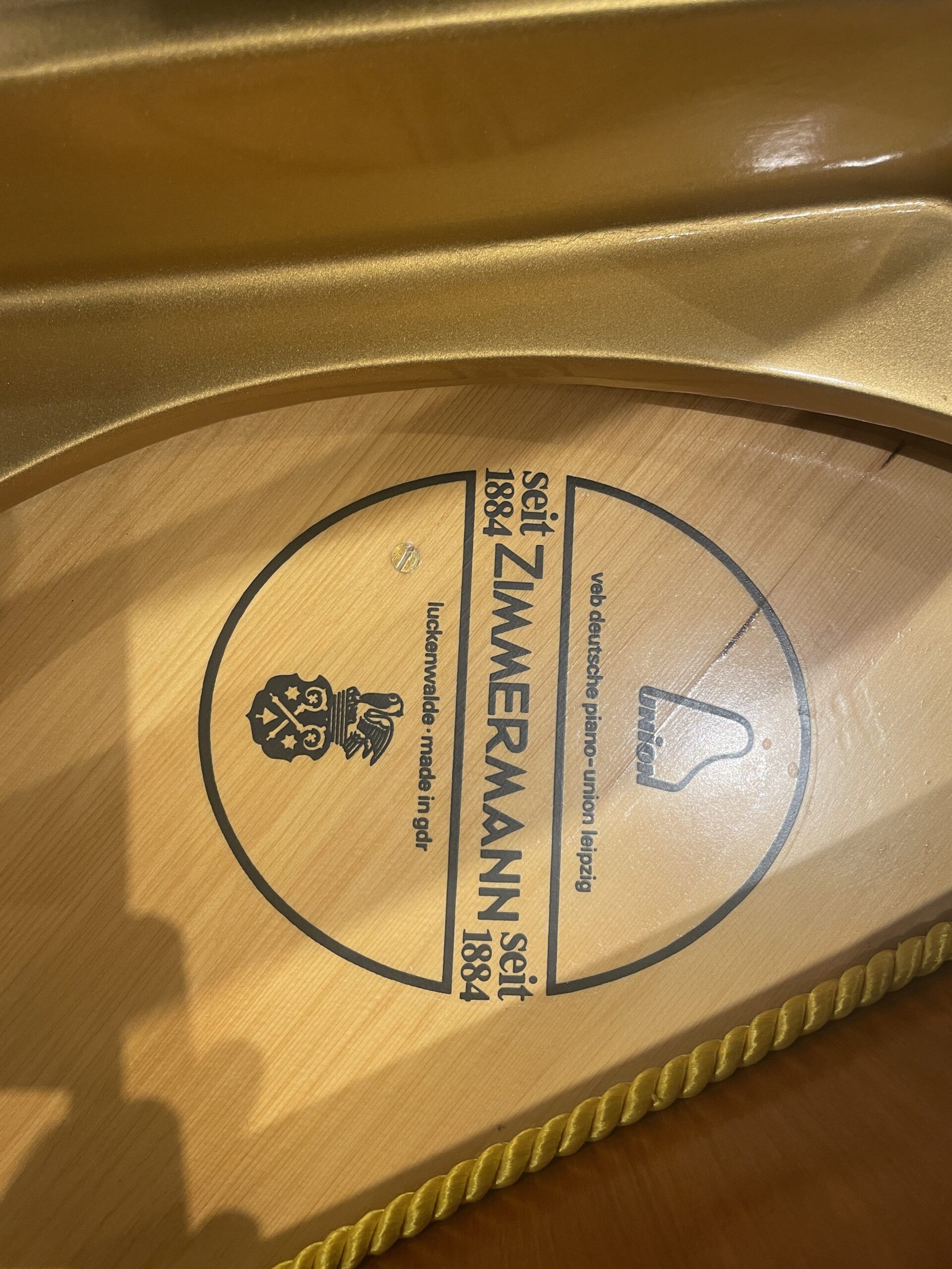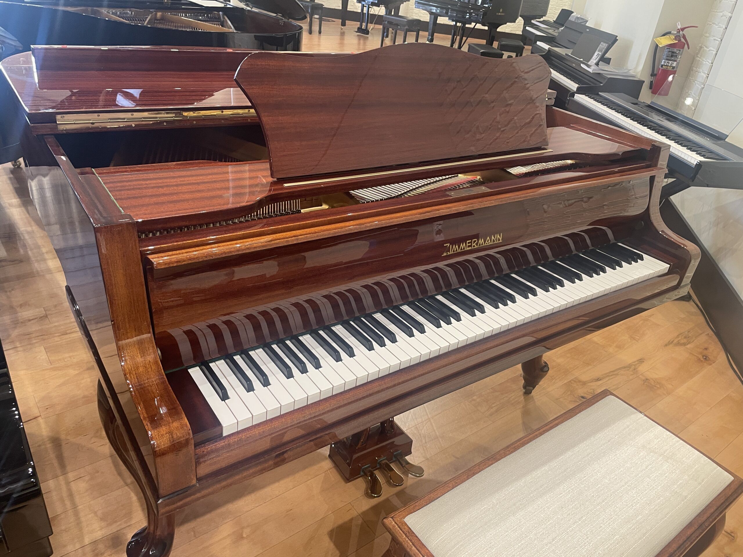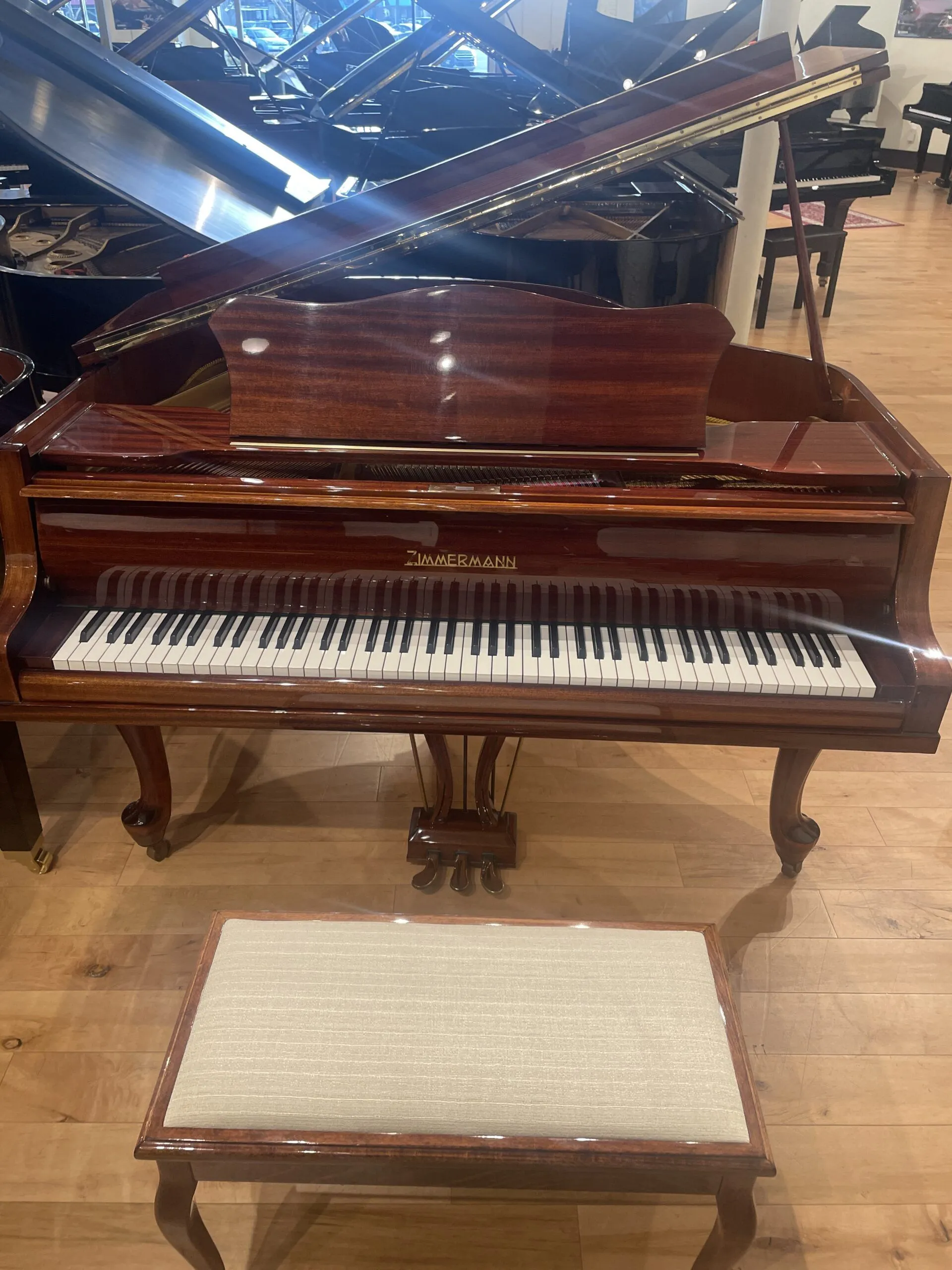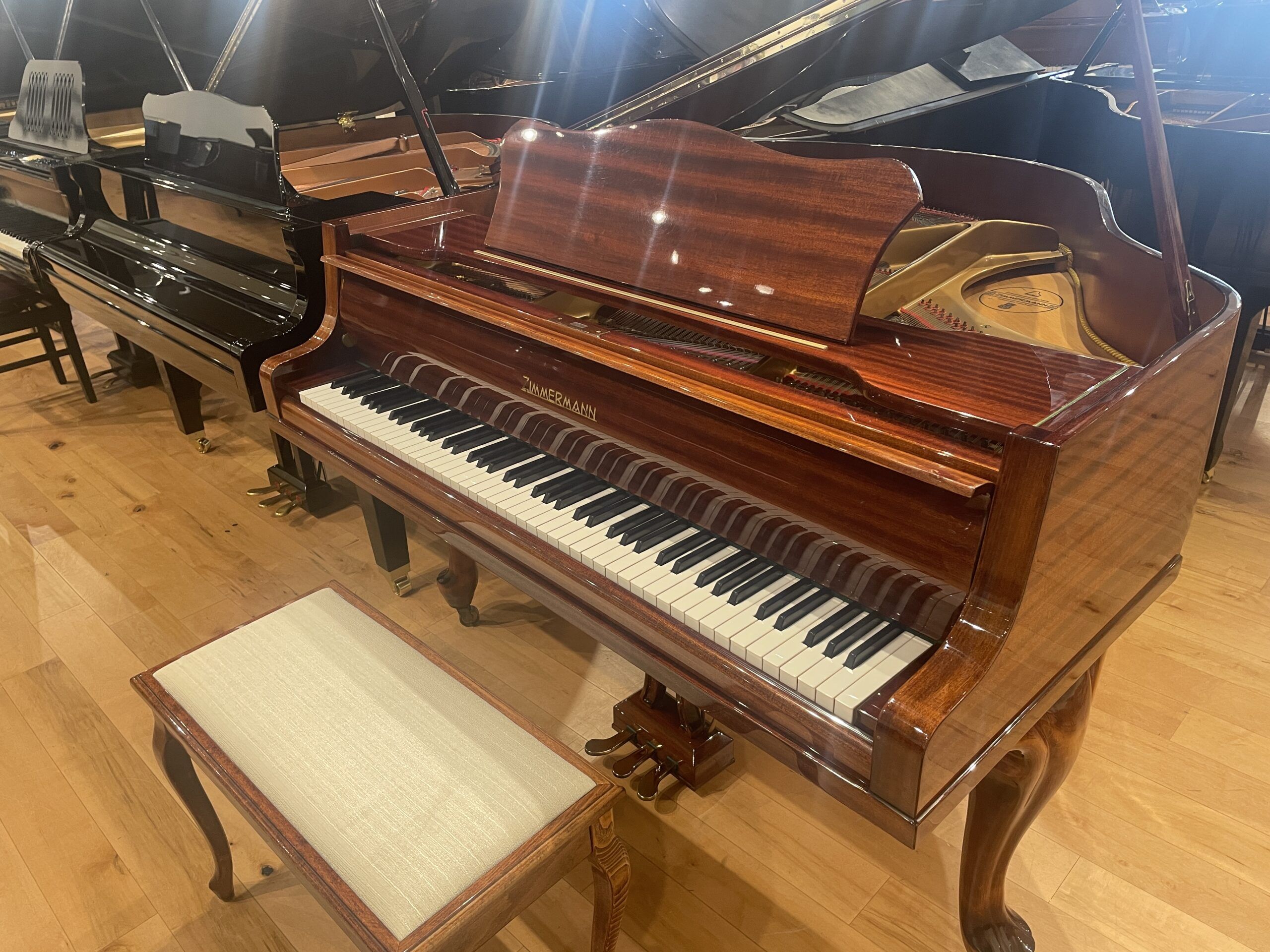 Zimmermann was, at one point, the largest piano manufacturer in Europe. This is a wonderful example of a German-made petite baby grand. The finish is a stunning, tiger stripe mahogany. The sound is rich and delicate. The perfect accent for a studio or library setting.