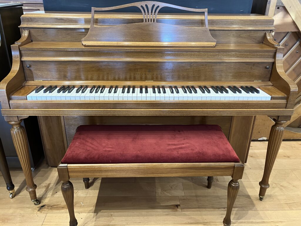 This 6’4 Grand Piano is a masterpiece of American piano craftsmanship. Made in Elkhart, Indiana, this piano boasts a classic warm tone and a wonderfully responsive key action.