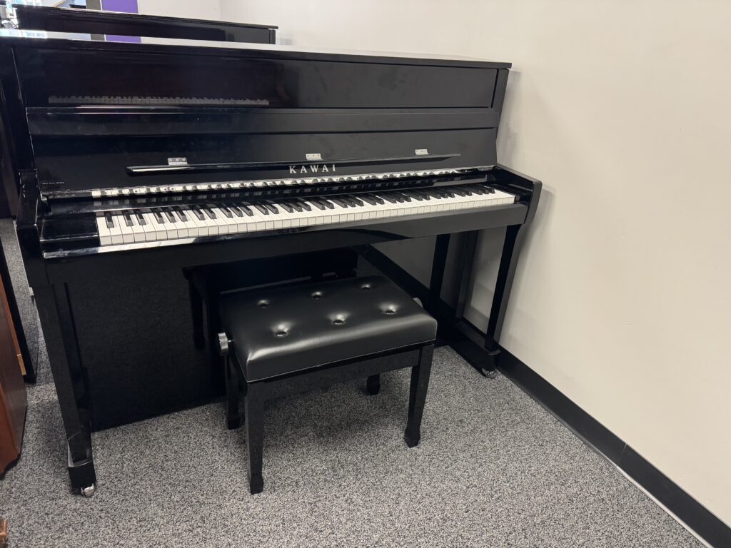 A good find for the developing piano student! At 45″ tall, this studio upright is great for beginning and intermediate piano repertoire. Bring your budding pianist to Solich Piano to test drive this Kawai!
