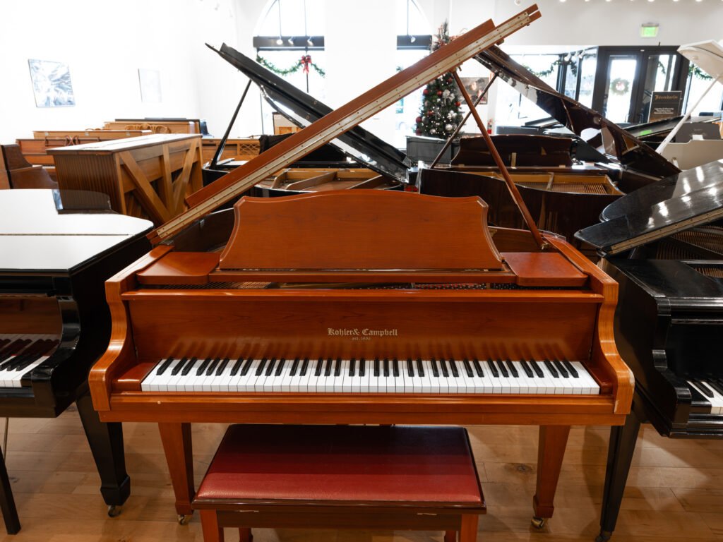 This baby grand plays splendidly! The tone is warm, resonant, and very enjoyable. At 4’9″ this piano is excellent for smaller spaces, and it’s budget friendly! A great find for a pianist of any level.